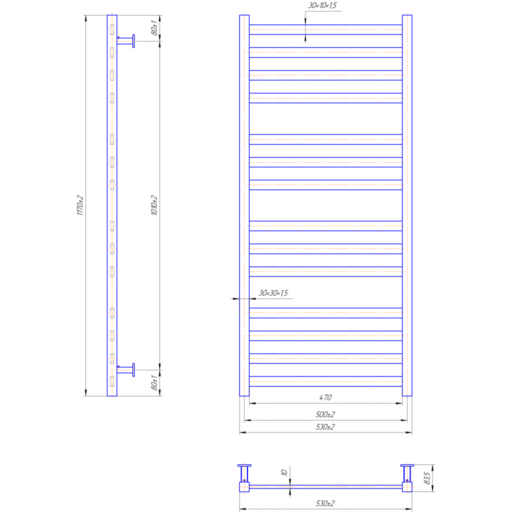 рушникосушка - 1шт. комплект кріплень - 1шт. кран Маєвського - 1 шт. заглушка - 1шт. паспорт - 1шт. коробка - 1шт.Розміри | 1170x530 |