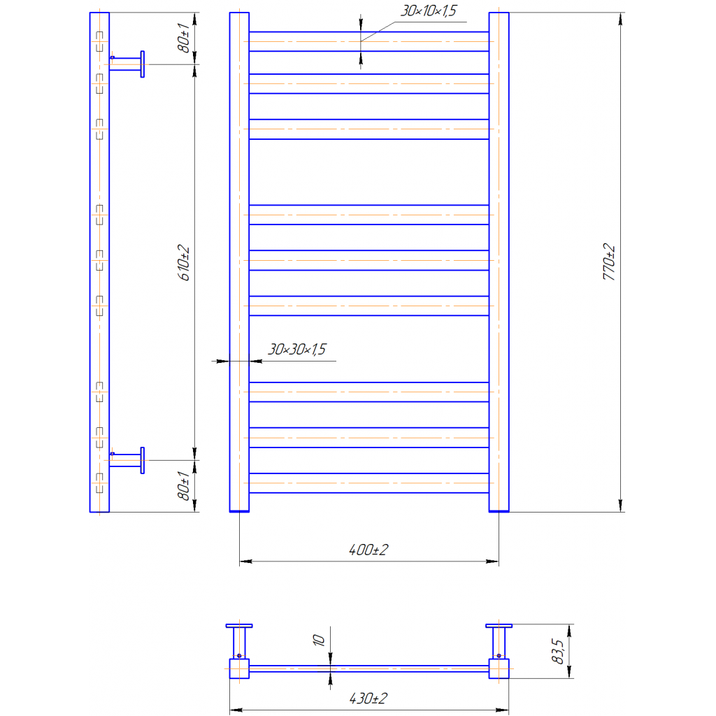 Рушникосушарка INOX Чикаго 770х430/400. Розміри: висота - 770 мм, ширина - 430 мм, глибина 80 мм, міжцентрова відстань для підключення - 400 мм, діаметр підключення G1/2''. Варіанти підключення: нижнє, діагональне та бічне. Кількість ребер - 9. Виготовлена з полірованої нержавіючої сталі без хромування. Для всесезонної роботи водяну модель можна переобладнати на комбіновану, встановивши ТЕН, рекомендована потужність 300 Вт. Сумісні аксесуари: поворотні полиці та навісні гачки для збільшення функціональності. Рекомендовано підключати рушникосушарку за допомогою кранів Маріо. Гарантія - 50 років в закритій системі опалення, 5 років у централізованій.