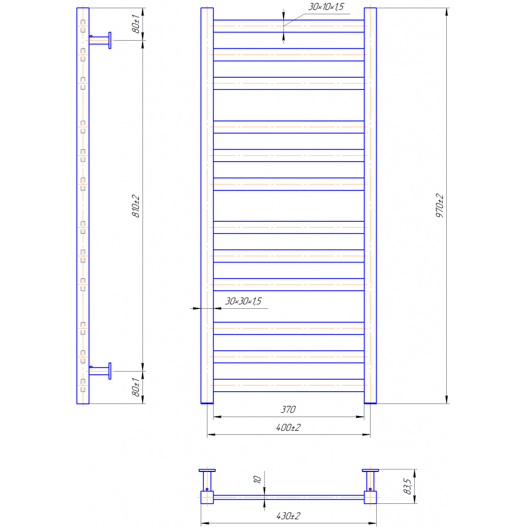 Рушникосушарка INOX Чикаго 970х430/400. Розміри: висота - 970 мм, ширина - 430 мм, глибина 80 мм, міжцентрова відстань для підключення - 400 мм, діаметр підключення G1/2''. Варіанти підключення: нижнє, діагональне та бічне. Кількість ребер - 12. Виготовлена з полірованої нержавіючої сталі без хромування. Для всесезонної роботи водяну модель можна переобладнати на комбіновану, встановивши ТЕН, рекомендована потужність 600 Вт. Сумісні аксесуари: поворотні полиці та навісні гачки для збільшення функціональності. Рекомендовано підключати рушникосушарку за допомогою кранів Маріо. Гарантія - 50 років в закритій системі опалення, 5 років у централізованій.