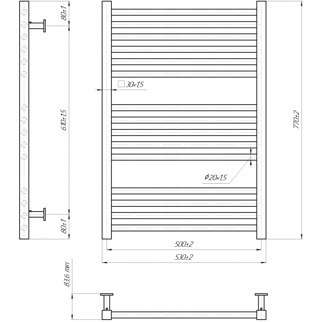рушникосушка - 1шт. комплект кріплень - 1шт. кран Маєвського - 1 шт. заглушка - 1шт. паспорт - 1шт. коробка - 1шт.Розміри | 770x530 |