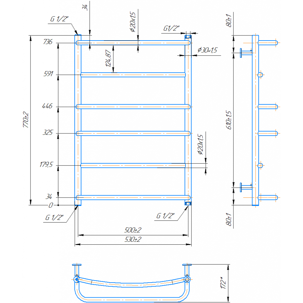 рушникосушка - 1шт. комплект кріплень - 1шт. кран Маєвського - 1 шт. заглушка - 1шт. паспорт - 1шт. коробка - 1шт.Розміри | 770x530 |