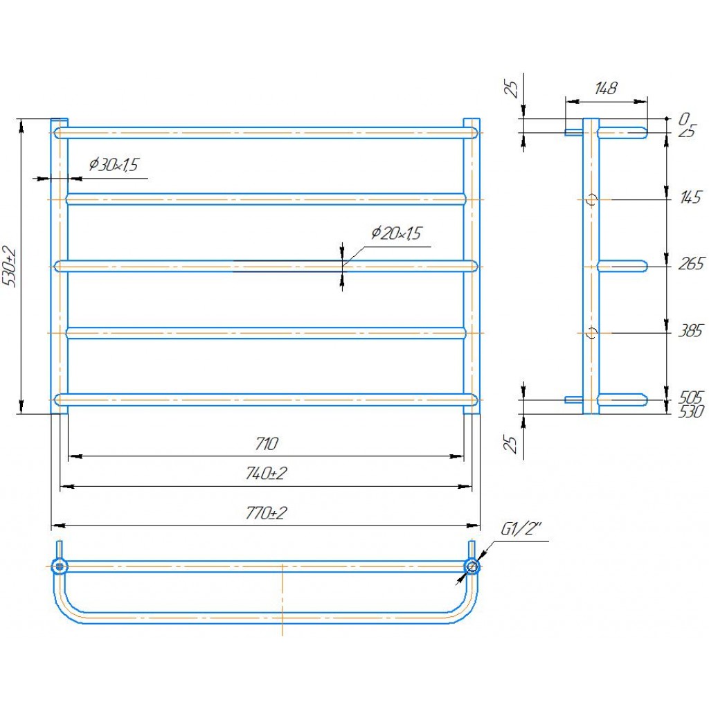 Рушникосушарка INOX Люкс Сіті 430х770/740. Розміри: висота - 430 мм, ширина - 770 мм, глибина 160 мм, міжцентрова відстань для підключення - 740 мм, діаметр підключення G1/2''. Варіанти підключення: нижнє, діагональне та бічне. Кількість ребер - 5. Виготовлена з полірованої нержавіючої сталі без хромування. Для всесезонної роботи водяну модель можна переобладнати на комбіновану, встановивши ТЕН, рекомендована потужність 200 Вт. Сумісні аксесуари: поворотні полиці та навісні гачки для збільшення функціональності. Рекомендовано підключати рушникосушарку за допомогою кранів Маріо. Гарантія - 50 років в закритій системі опалення, 5 років у централізованій.