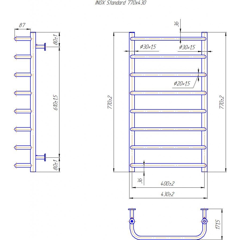 Водяна рушникосушарка INOX Стандарт 770х430/400