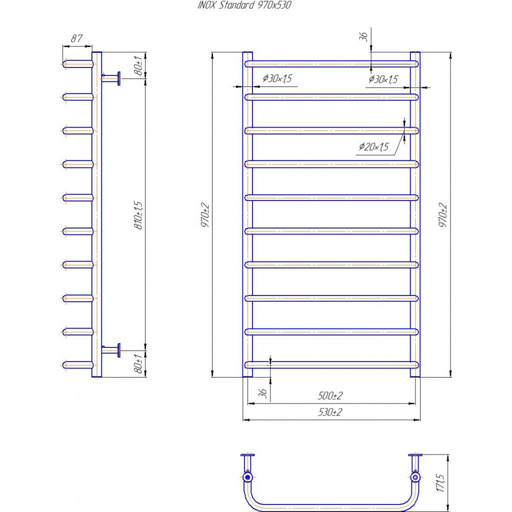 Водяна рушникосушарка INOX Стандарт 970х530/500