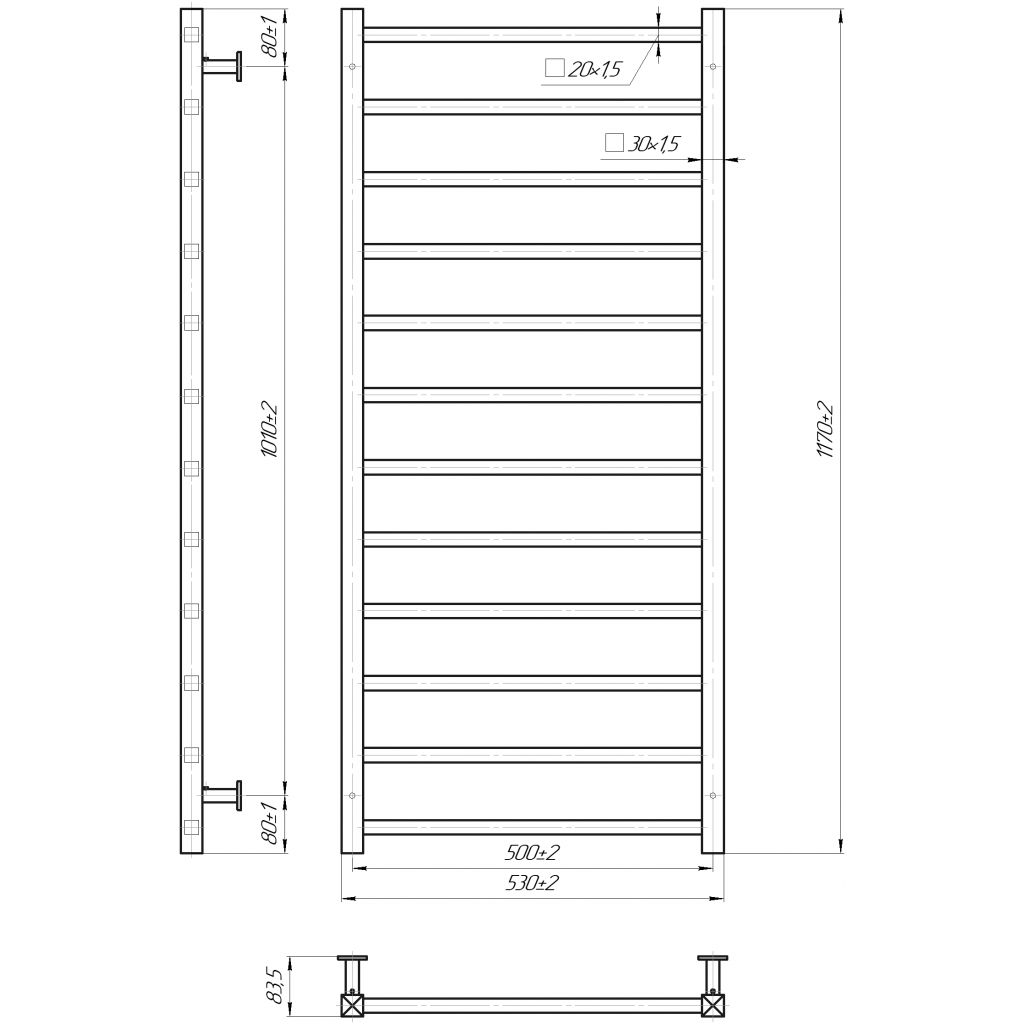 рушникосушка - 1шт. комплект кріплень - 1шт. кран Маєвського - 1 шт. заглушка - 1шт. паспорт - 1шт. коробка - 1шт.Розміри | 1170x530 |