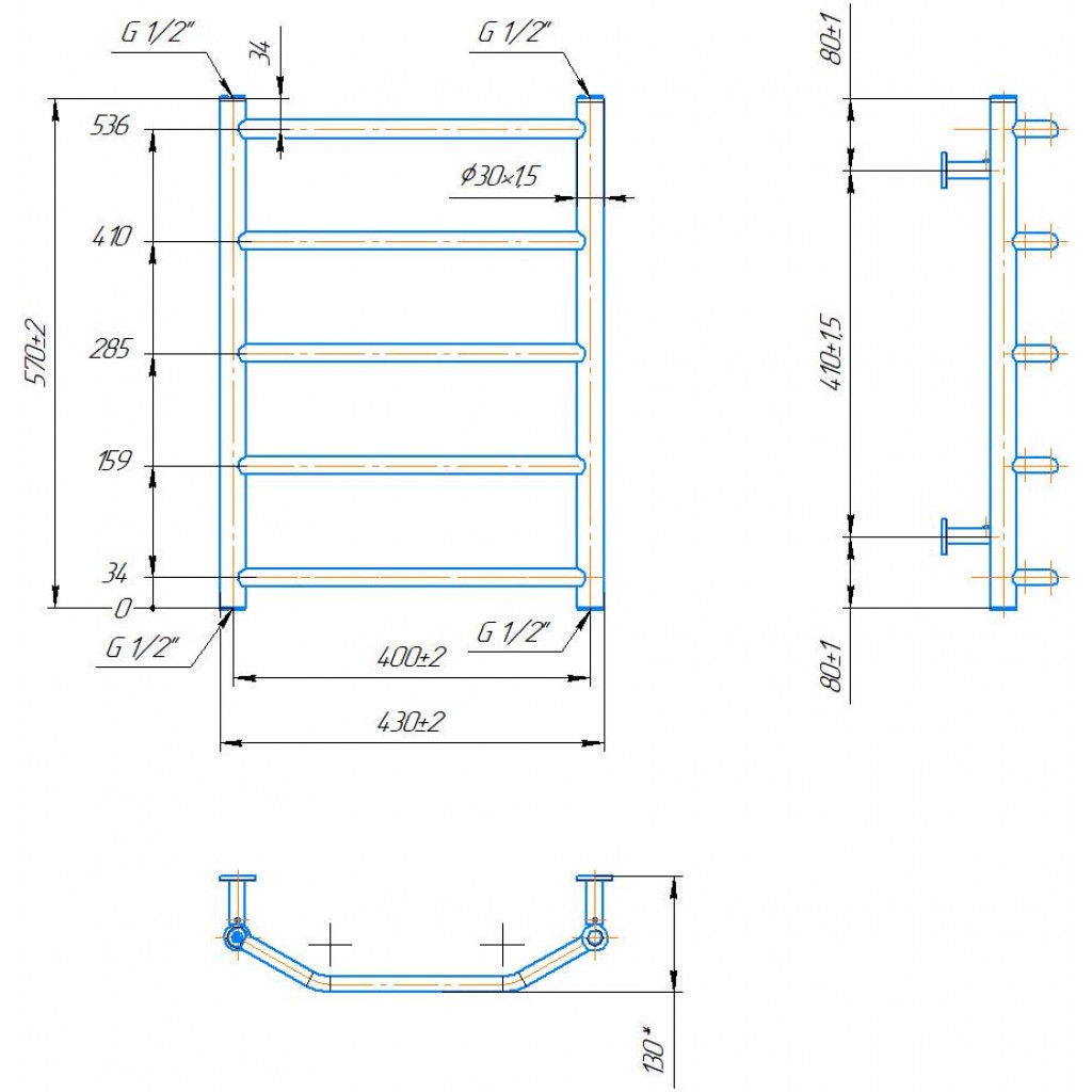 Рушникосушарка INOX Трапеція 570х430/400. Розміри: висота - 570 мм, ширина - 430 мм, глибина 130 мм, міжцентрова відстань для підключення - 400 мм, діаметр підключення G1/2''. Варіанти підключення: нижнє, діагональне та бічне. Кількість ребер - 5. Виготовлена з полірованої нержавіючої сталі без хромування. Для всесезонної роботи водяну модель можна переобладнати на комбіновану, встановивши ТЕН, рекомендована потужність 120 Вт. Сумісні аксесуари: поворотні полиці та навісні гачки для збільшення функціональності. Рекомендовано підключати рушникосушарку за допомогою кранів Маріо. Гарантія - 50 років в закритій системі опалення, 5 років у централізованій.