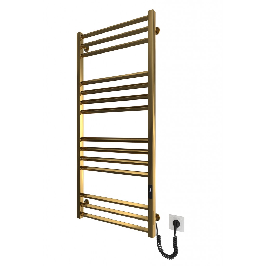 Електросушарка для рушників побутова Кіото-I 1170х530/80 TR К 2.0 золото. Обладнана таймер-регулятором. Сумісна з комплектом прихованого підключення. Виготовлена з полірованої нержавіючої сталі. Варіанти покриття: полірована, сатин, чорний мат. Температурні режими таймер-регулятора: 40°С, 45°С, 50°С. Варіанти часу роботи: 3, 6 годин та постійний нагрів. Потужність 140.0 Вт. Гарантія - 20 років на корпус / 5 років на електричну частину/ 2 роки на покриття.