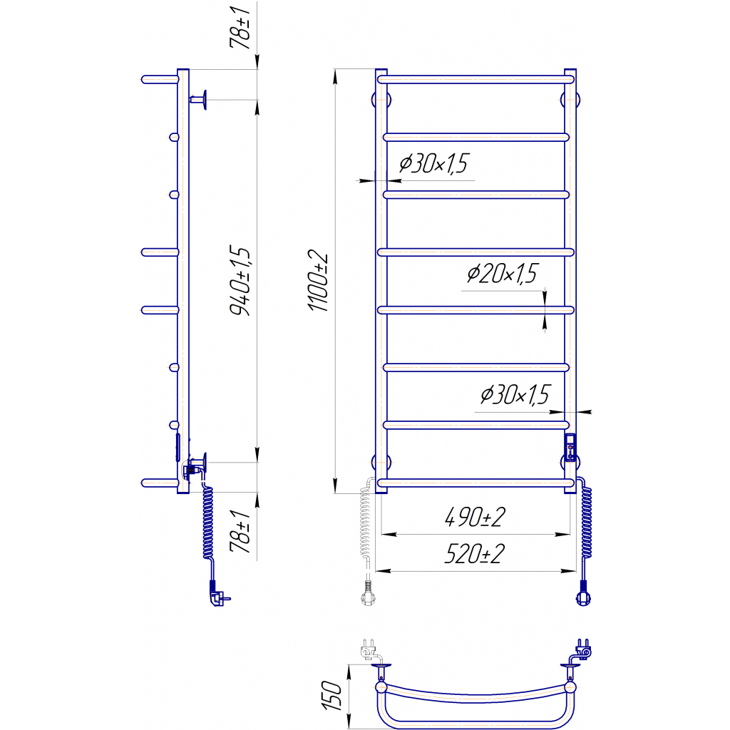 Електросушарка для рушників побутова Люкс НР-І 1090х530/150 TR К.