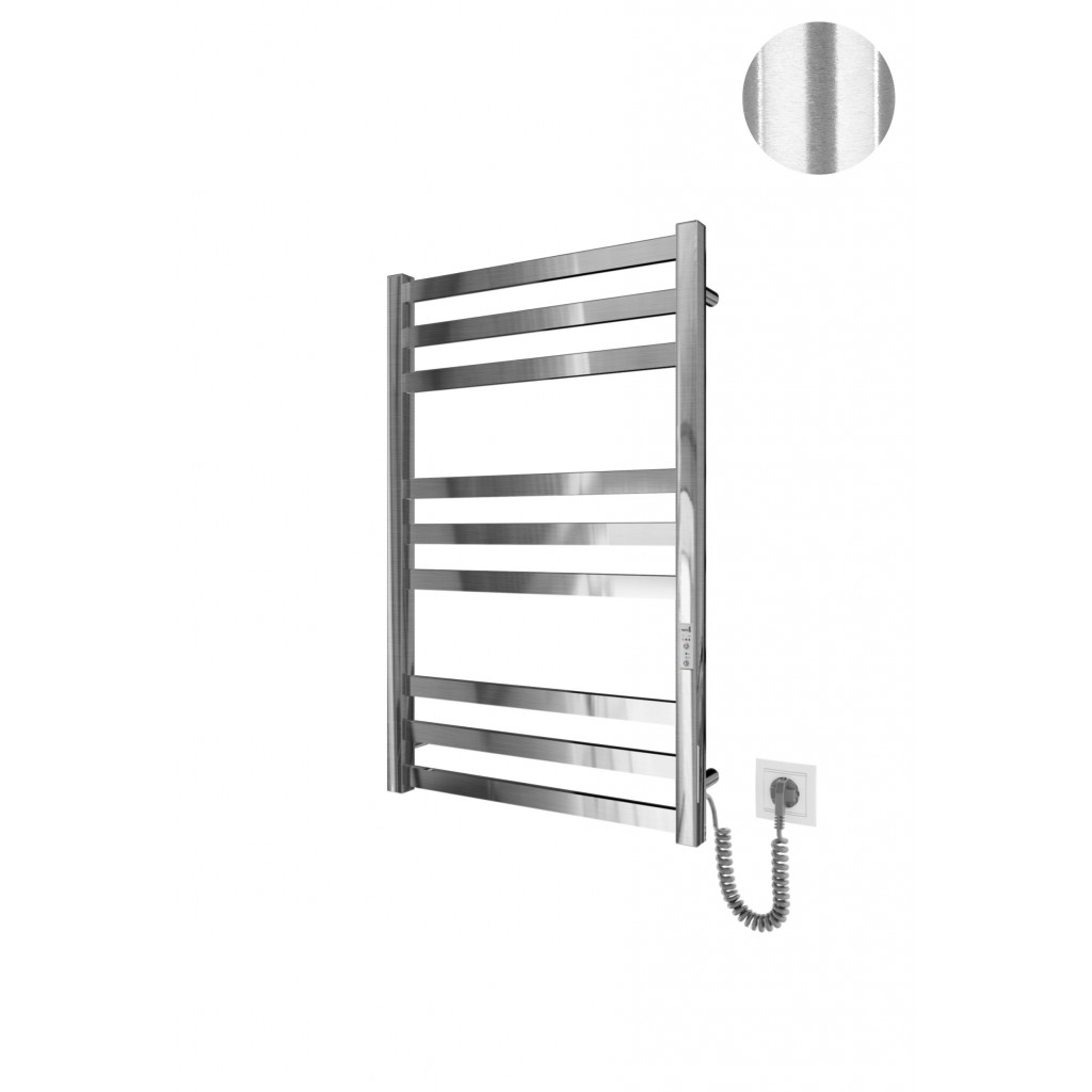 Бытовая электрическая полотенцесушилка Рушникосушка Чикаго-І 800х500/80 TR K покриття сатин. Оснащена таймер-регулятором и коннектором для подключения к розетке с любой стороны. Совместима с комплектом скрытого подключения. Имеет 9 перекладин и стойки. Изготовлена из полированной нержавеющей стали без хромирования. Температурные режимы таймер-регулятора: 40°С, 45°С, 50°С. Варианты времени работы: 3, 6 часов и постоянный нагрев. Мощность [3 Вт]. Для удобства использования можно дополнительно оснастить навесными крючками. Гарантия — .