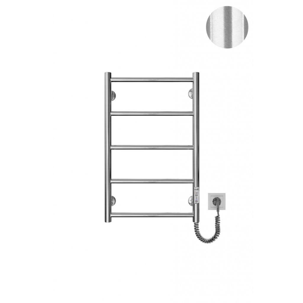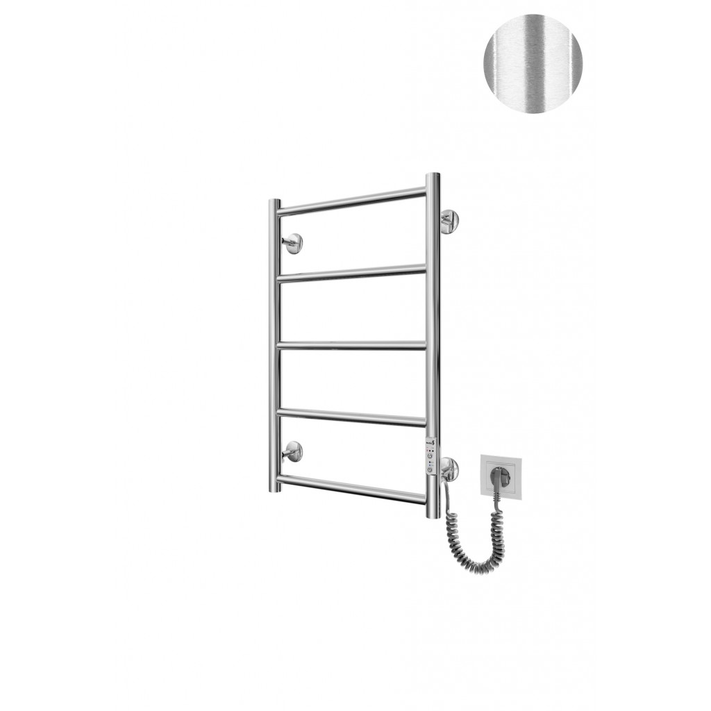 Бытовая электрическая полотенцесушилка Рушникосушка Класік F НР-I 650х430/75 TR K покриття сатин. Оснащена таймер-регулятором и коннектором для подключения к розетке с любой стороны. Совместима с комплектом скрытого подключения. Имеет 5 перекладин и стойки. Изготовлена из полированной нержавеющей стали без хромирования. Температурные режимы таймер-регулятора: 40°С, 45°С, 50°С. Варианты времени работы: 3, 6 часов и постоянный нагрев. Мощность [3 Вт]. Для удобства использования можно дополнительно оснастить навесными крючками. Гарантия — .