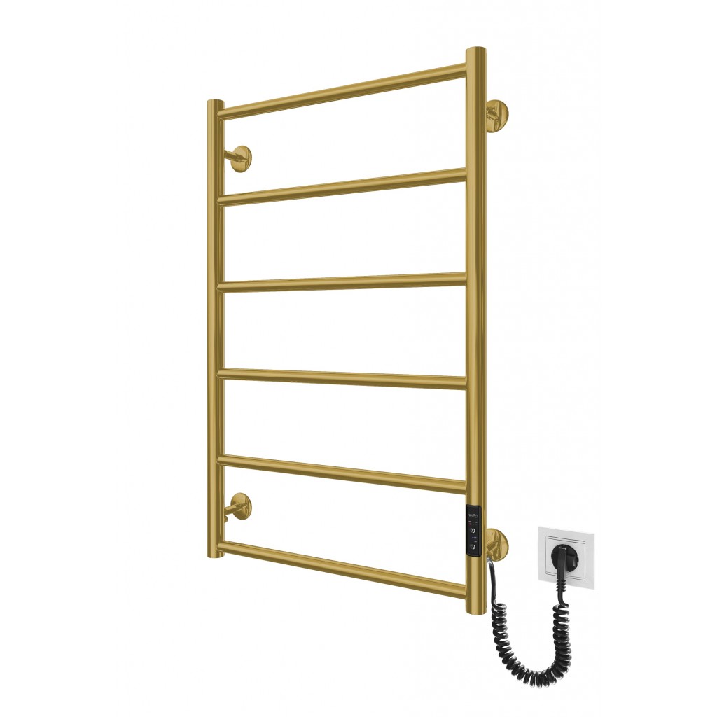 Бытовая электрическая полотенцесушилка Рушникосушка Класік F НР-I 800х530/75 TR K золото. Оснащена таймер-регулятором и коннектором для подключения к розетке с любой стороны. Совместима с комплектом скрытого подключения. Имеет 6 перекладин и стойки. Изготовлена из полированной нержавеющей стали без хромирования. Температурные режимы таймер-регулятора: 40°С, 45°С, 50°С. Варианты времени работы: 3, 6 часов и постоянный нагрев. Мощность [3 Вт]. Для удобства использования можно дополнительно оснастить навесными крючками. Гарантия — .