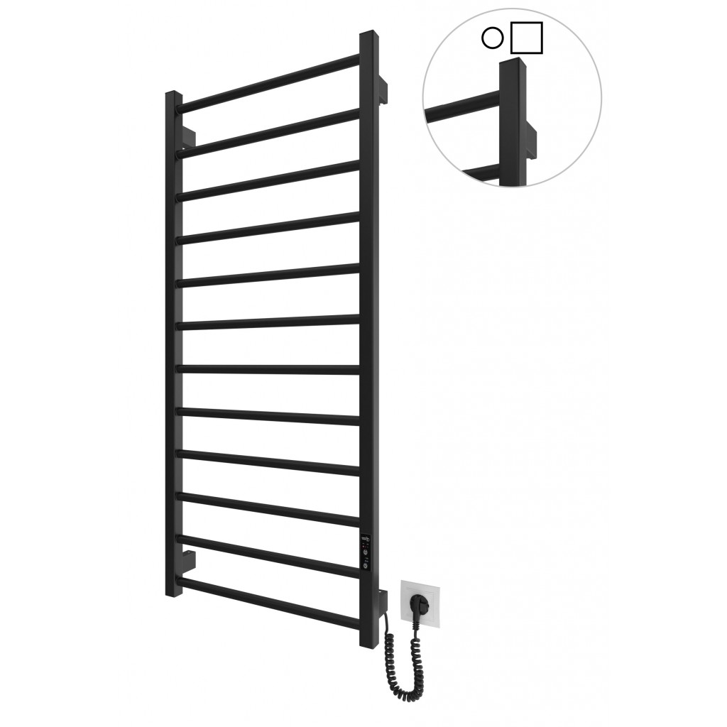 Электрический полотенцесушитель HF Leeds 1170x530. Работает по технологии сухого ТЭНа. Оборудован встроенным таймер-регулятором и коннектором для подключения к питанию с любой стороны. Оснащен комплектом для скрытого подключения. Модель имеет 12 ребер из круглой трубы и стойки из квадратного профиля. Материал - черная сталь с антикоррозийной обработкой. Варианты покрытия: черный мат или белый мат. Температурные режимы таймер-регулятора: 40°С, 45°С, 50°С. Время работы: 3, 6 часов или постоянный нагрев. Мощность 150 Вт. Гарантия - 3 года.