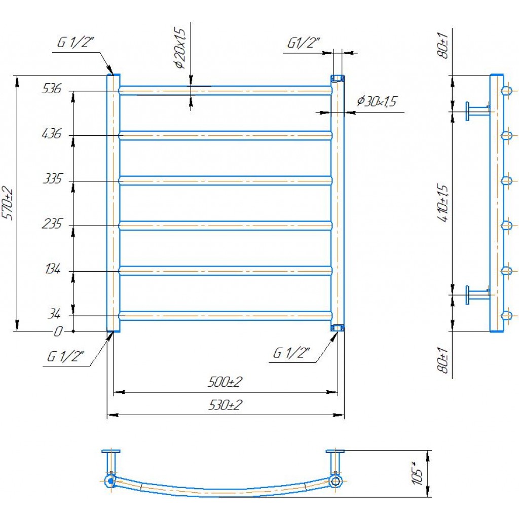 Водяной полотенцесушитель INOX Класик 570х530/500