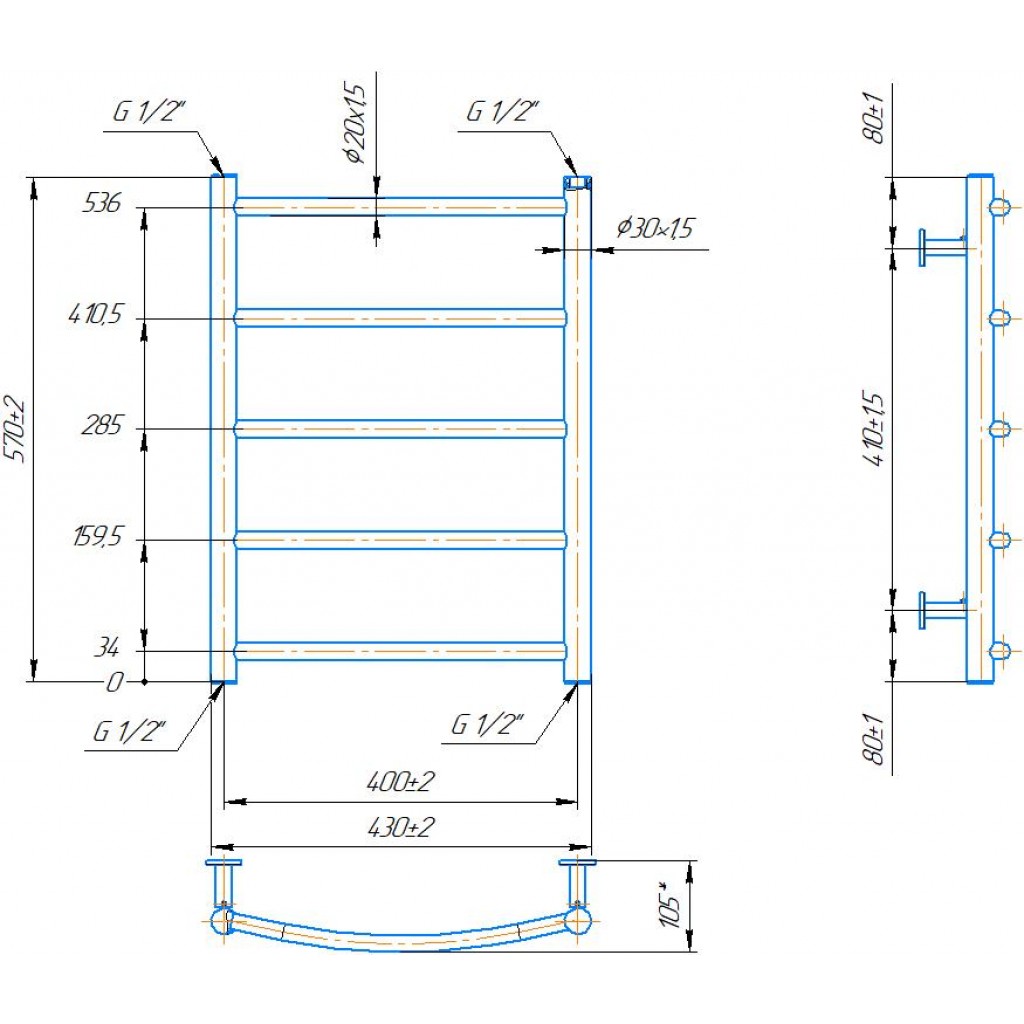 Полотенцесушитель INOX Классик HP 570х430/400. Розміри: висота - 570 мм, ширина - 430 мм, глибина 85 мм, міжцентрова відстань для підключення - 400 мм, діаметр підключення G1/2''. Варіанти підключення: нижнє, діагональне та бічне. Количество ребер - 5. Виготовлена з полірованої нержавіючої сталі без хромування. Для всесезонної роботи водяну модель можна переобладнати на комбіновану, встановивши ТЕН, рекомендована потужність 120 Вт. Сумісні аксесуари: поворотні полиці та навісні гачки для збільшення функціональності. Рекомендовано підключати рушникосушарку за допомогою кранів Маріо. Гарантия - 50 років в закрытой системе отопления, 5 років у централізованій.