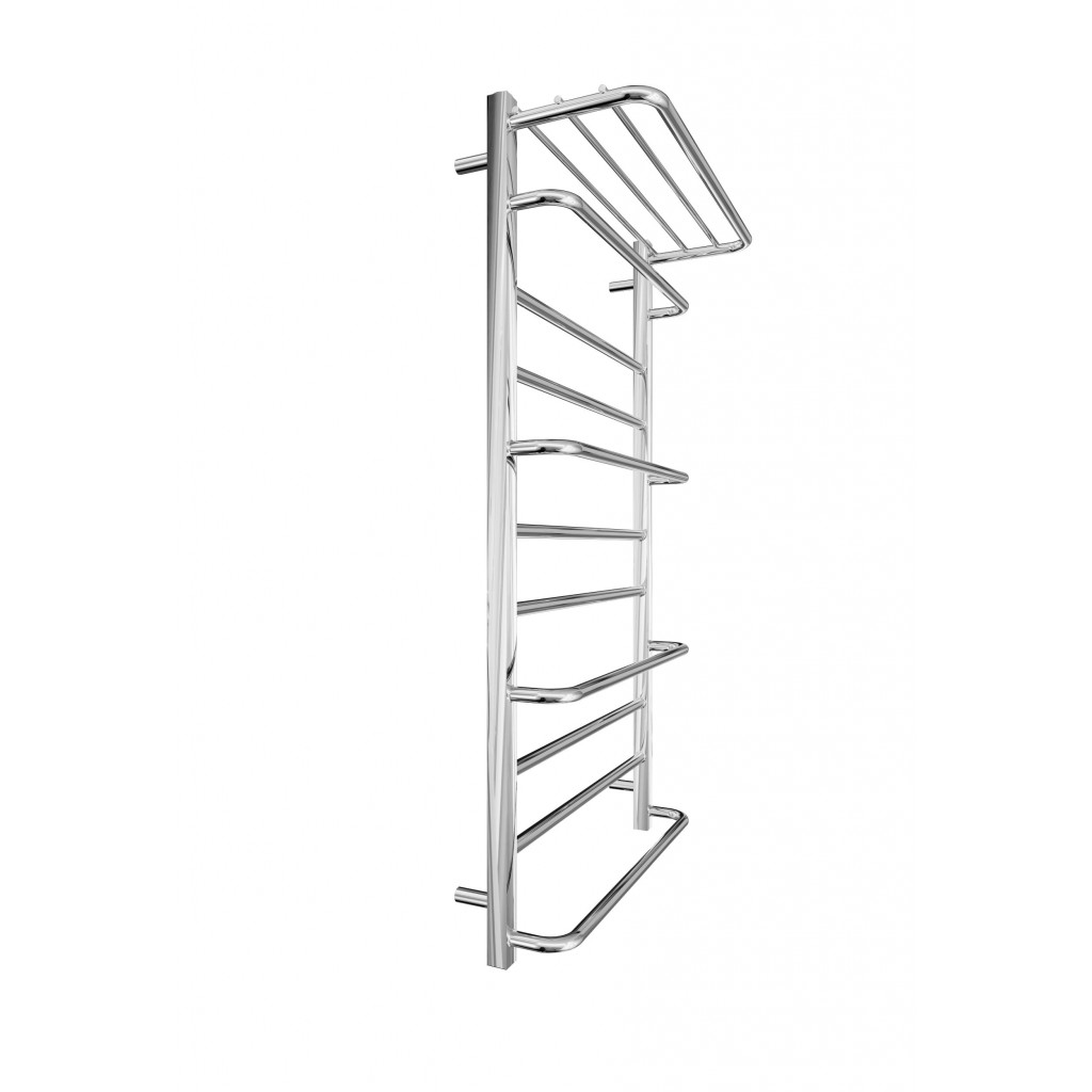 Водяной полотенцесушитель INOX Люксор 1170х630/600. Размеры: высота - 1 170 мм, ширина - 630 мм, глубина 260 мм, межцентровое расстояние для подключения - 600 мм, диаметр подключения G1/2''. Варианты подключения: нижнее, диагональное и боковое. Количество ребер - 11. Изготовлена из полированной нержавеющей стали без хромирования. Для всесезонной работы водяную модель можно переоборудовать в комбинированную, установив ТЭН, рекомендуемая мощность 600 Вт. Совместимые аксессуары: поворотные полки и навесные крючки для увеличения функциональности. Рекомендуется подключать полотенцесушитель с помощью кранов Марио. Гарантия - 50 лет в закрытой системе отопления, 5 лет в централизованной.