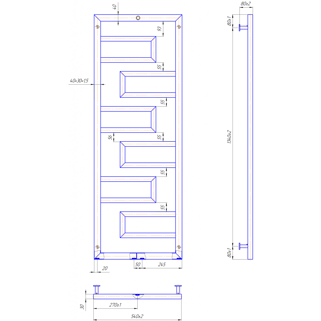 полотенцесушитель - 1шт. комплект крепежа - 1шт. кран Маєвського - 1 шт. заглушка - 1шт. паспорт - 1шт. коробка - 1шт.Размери | 1500x540 |