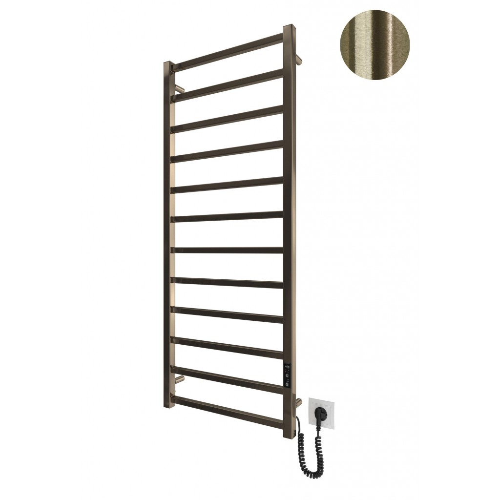 Бытовая электрическая полотенцесушилка Рушникосушка Токіо-I 1200х500/80 TR К бронза. Оснащена таймер-регулятором и коннектором для подключения к розетке с любой стороны. Совместима с комплектом скрытого подключения. Имеет 12 перекладин и стойки. Изготовлена из полированной нержавеющей стали без хромирования. Температурные режимы таймер-регулятора: 40°С, 45°С, 50°С. Варианты времени работы: 3, 6 часов и постоянный нагрев. Мощность [3 Вт]. Для удобства использования можно дополнительно оснастить навесными крючками. Гарантия — .
