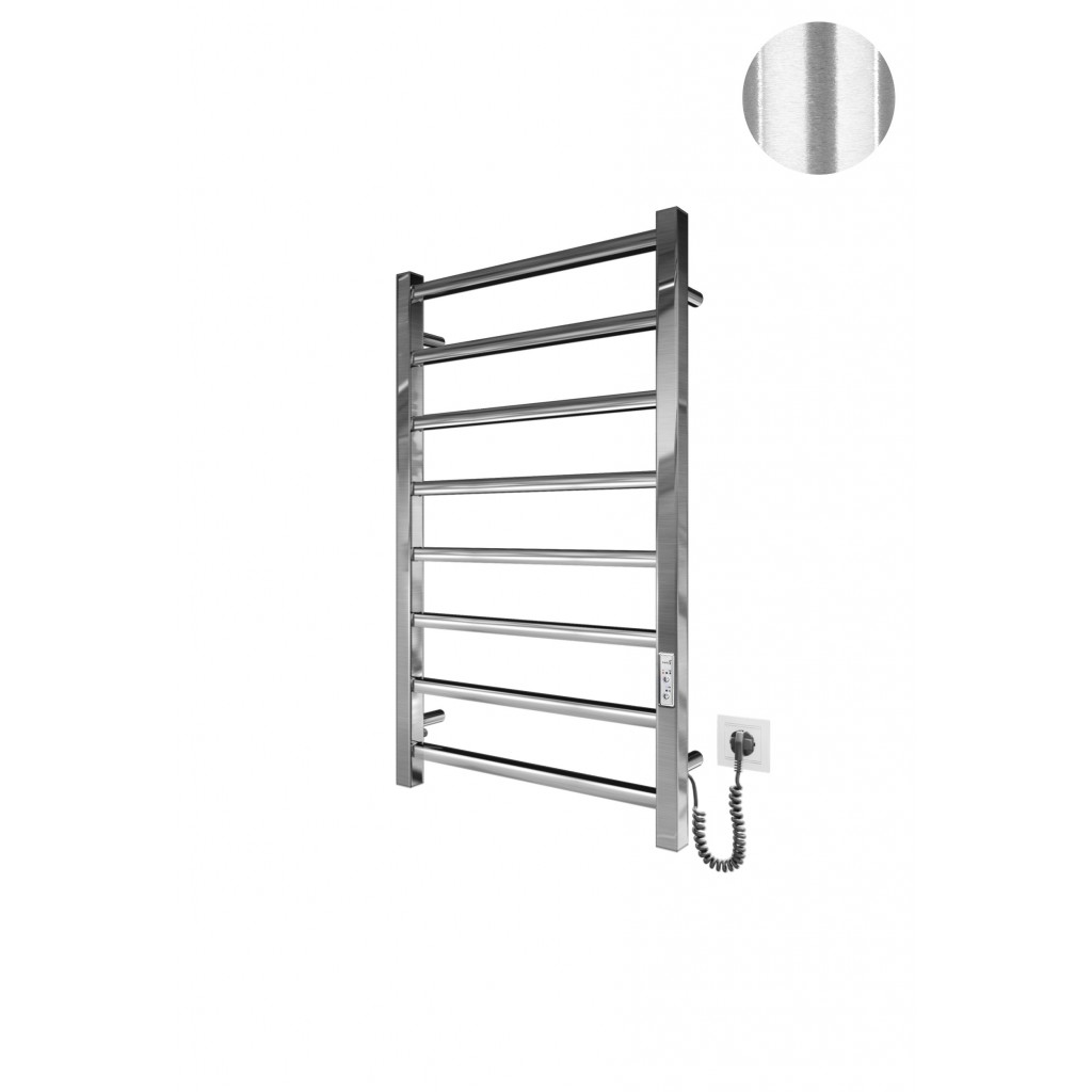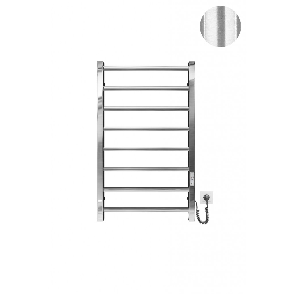Бытовая электрическая полотенцесушилка Рушникосушка Токіо-I 800х500/80 електр. TR К покриття сатин. Оснащена таймер-регулятором и коннектором для подключения к розетке с любой стороны. Совместима с комплектом скрытого подключения. Имеет 8 перекладин и стойки. Изготовлена из полированной нержавеющей стали без хромирования. Температурные режимы таймер-регулятора: 40°С, 45°С, 50°С. Варианты времени работы: 3, 6 часов и постоянный нагрев. Мощность [3 Вт]. Для удобства использования можно дополнительно оснастить навесными крючками. Гарантия — .