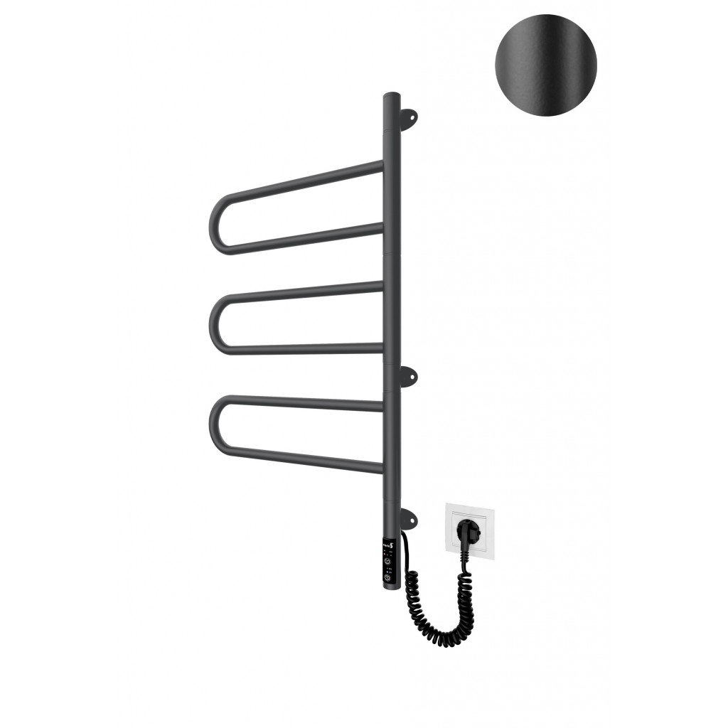 Бытовая электрическая полотенцесушилка Рушникосушка Тристар-I 800х445/55 електр. TR чорний мат. Оснащена таймер-регулятором и коннектором для подключения к розетке с любой стороны. Совместима с комплектом скрытого подключения. Имеет 3 перекладин и стойки. Изготовлена из полированной нержавеющей стали без хромирования. Температурные режимы таймер-регулятора: 40°С, 45°С, 50°С. Варианты времени работы: 3, 6 часов и постоянный нагрев. Мощность [3 Вт]. Для удобства использования можно дополнительно оснастить навесными крючками. Гарантия — .