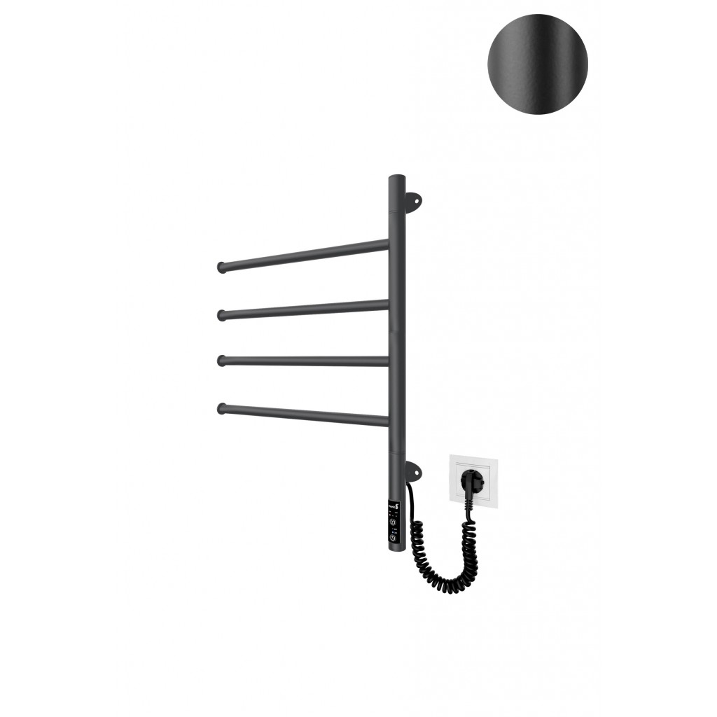 Бытовая электрическая полотенцесушилка Рушникосушка Веєр-I 600х445/55 електр. TR чорний мат. Оснащена таймер-регулятором и коннектором для подключения к розетке с любой стороны. Совместима с комплектом скрытого подключения. Имеет 4 перекладин и стойки. Изготовлена из полированной нержавеющей стали без хромирования. Температурные режимы таймер-регулятора: 40°С, 45°С, 50°С. Варианты времени работы: 3, 6 часов и постоянный нагрев. Мощность [3 Вт]. Для удобства использования можно дополнительно оснастить навесными крючками. Гарантия — .
