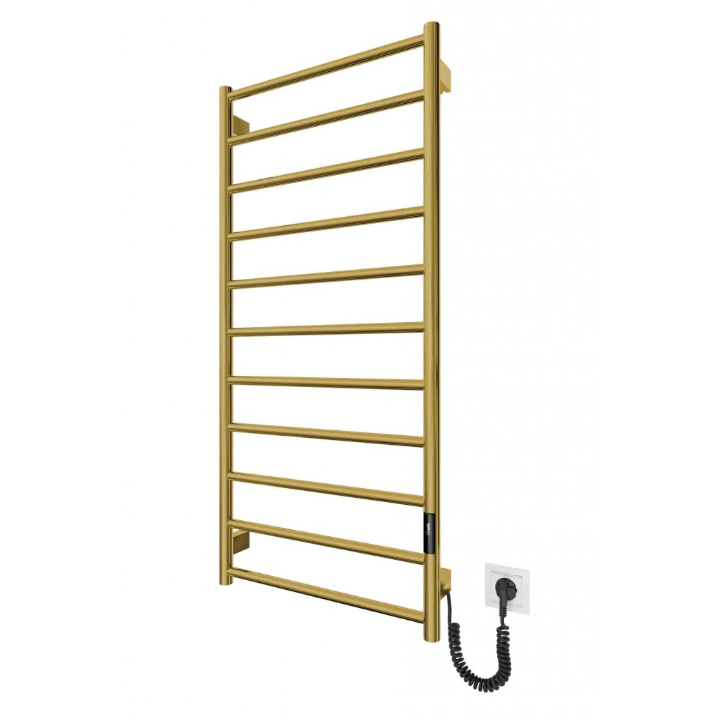 Електросушарка для рушників побутова Урбан-I 1110x500/85 TR K 2.0 золото. Обладнана таймер-регулятором. Сумісна з комплектом прихованого підключення. Виготовлена з полірованої нержавіючої сталі. Варіанти покриття: полірована, сатин, чорний мат. Температурні режими таймер-регулятора: 40°С, 45°С, 50°С. Варіанти часу роботи: 3, 6 годин та постійний нагрів. Потужність 125.0 Вт. Гарантія - 20 років на корпус / 5 років на електричну частину/ 2 роки на покриття.