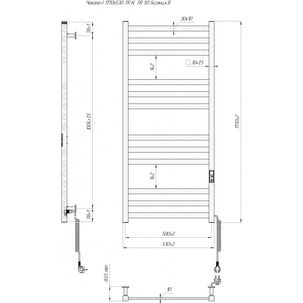 Електросушарка для рушників побутова Чикаго-І 1170х530/80 TR K.