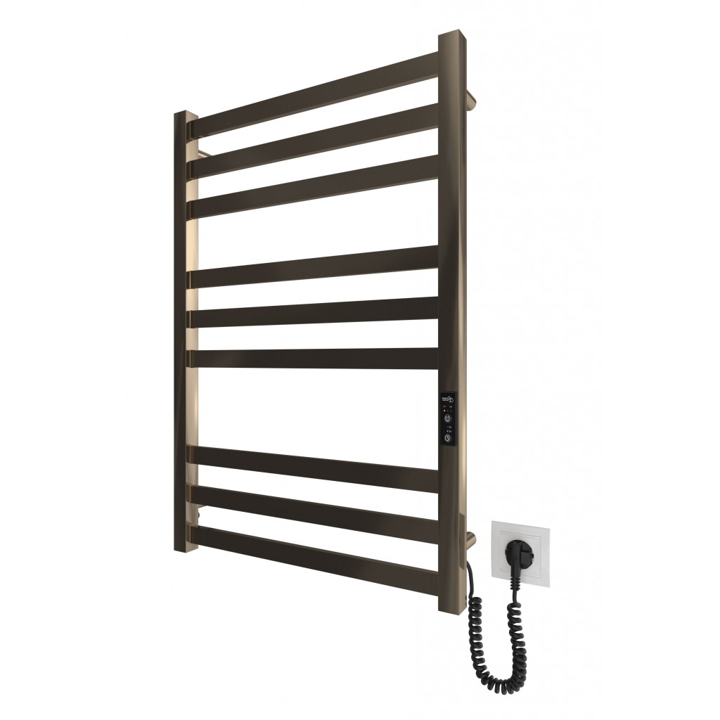 Електросушарка для рушників побутова Чикаго-І 800х500/80 TR K бронза. Обладнана таймер-регулятором. Сумісна з комплектом прихованого підключення. Виготовлена з полірованої нержавіючої сталі. Варіанти покриття: полірована, сатин, чорний мат. Температурні режими таймер-регулятора: 40°С, 45°С, 50°С. Варіанти часу роботи: 3, 6 годин та постійний нагрів. Потужність 130.0 Вт. Гарантія - 20 років на корпус / 5 років на електричну частину/ 2 роки на покриття.