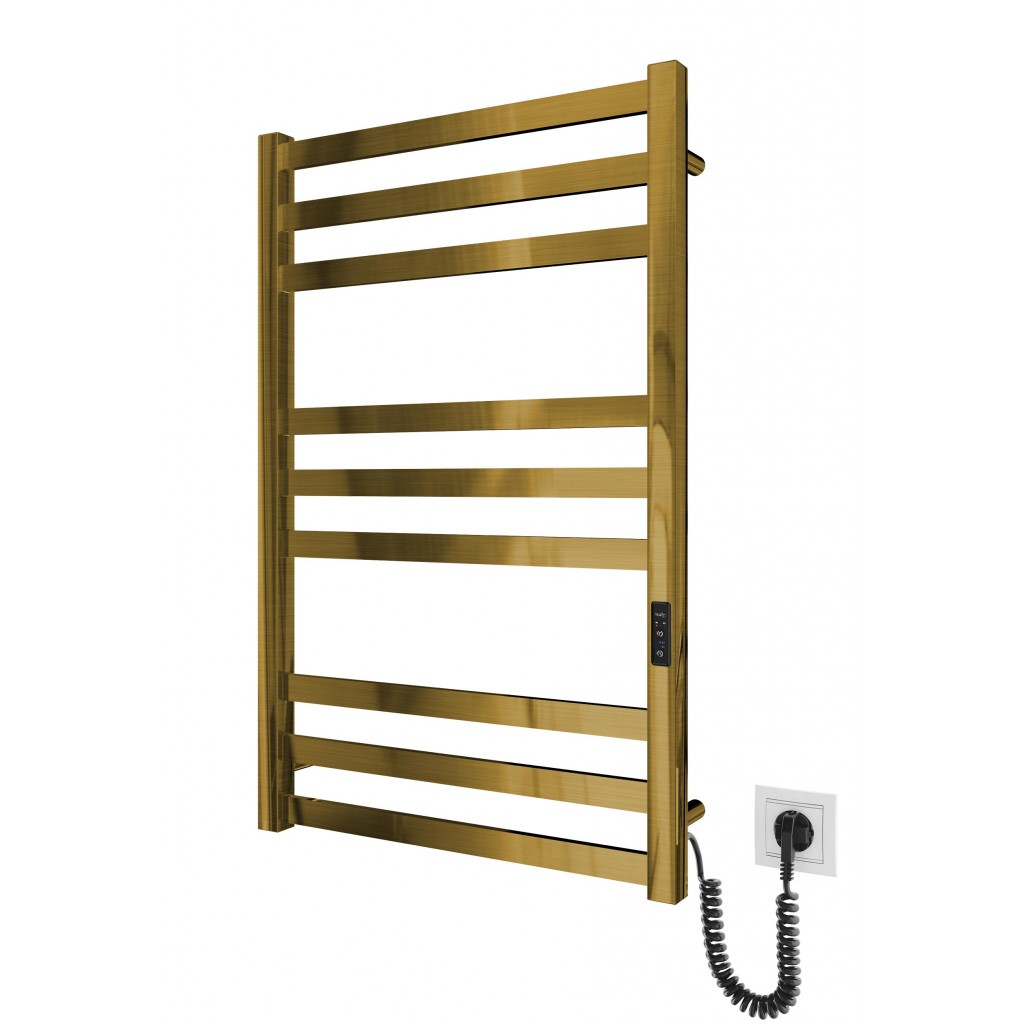 Електросушарка для рушників побутова Чикаго-І 800х500/80 TR K золото сатин. Обладнана таймер-регулятором. Сумісна з комплектом прихованого підключення. Виготовлена з полірованої нержавіючої сталі. Варіанти покриття: полірована, сатин, чорний мат. Температурні режими таймер-регулятора: 40°С, 45°С, 50°С. Варіанти часу роботи: 3, 6 годин та постійний нагрів. Потужність 115.0 Вт. Гарантія - 20 років на корпус / 5 років на електричну частину/ 2 роки на покриття.