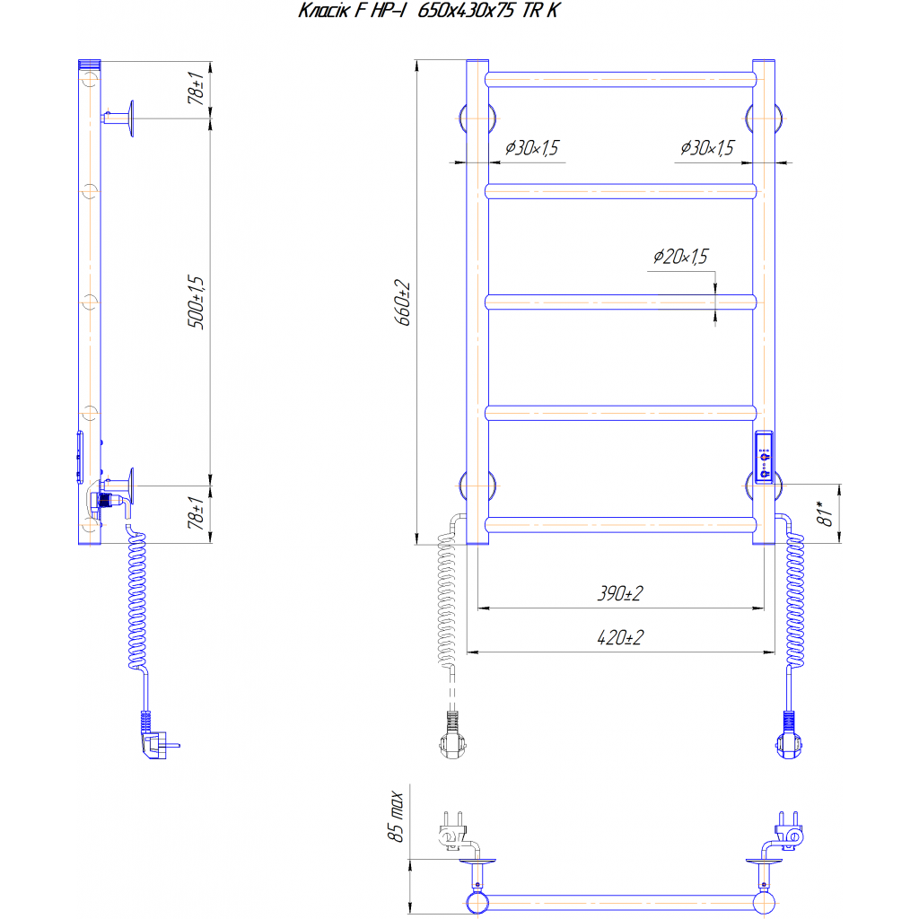Електросушарка для рушників побутова Класік F НР-I 650х430/75 TR K.