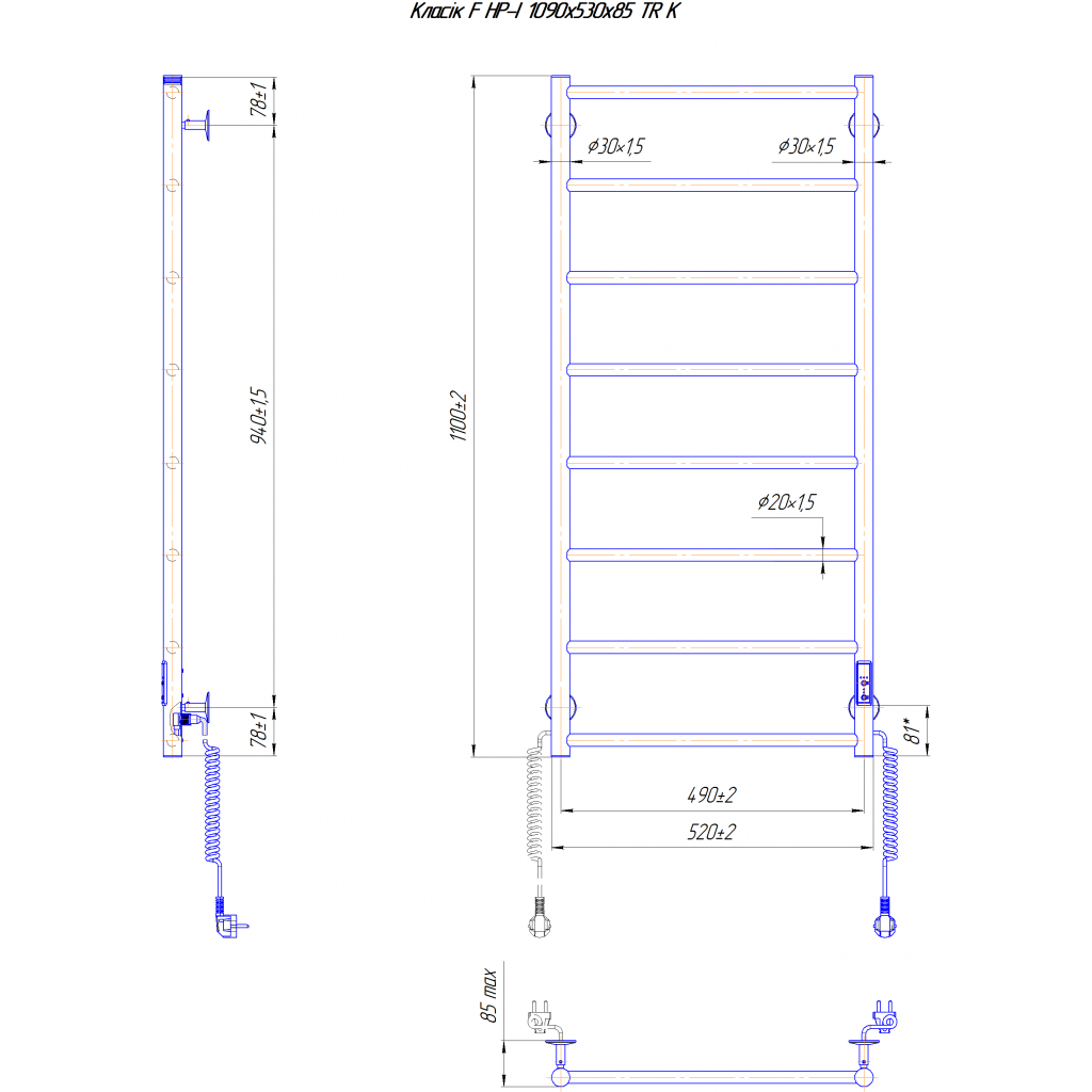 Електросушарка для рушників побутова Класік F НР-I 1090х530/75 TR K.