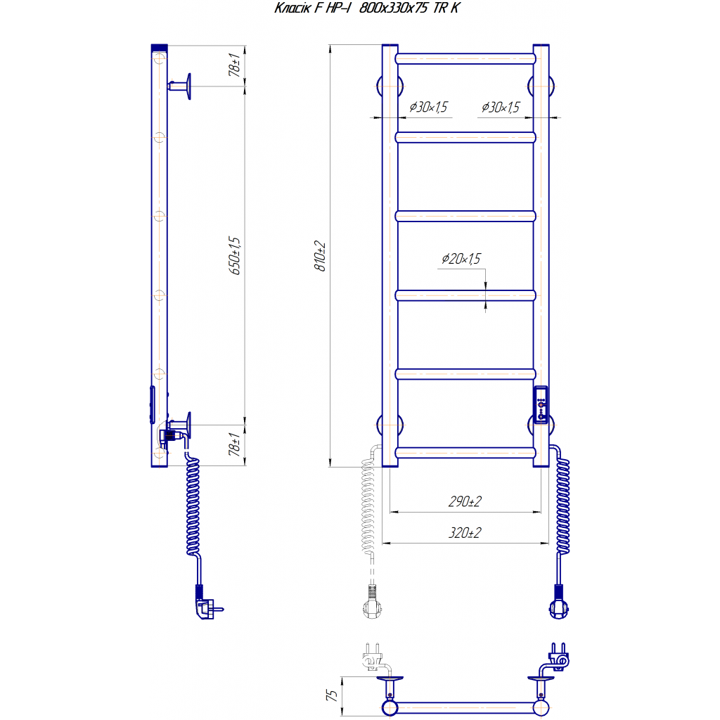 Електросушарка для рушників побутова Класік F НР-I 800х330/75 TR K.