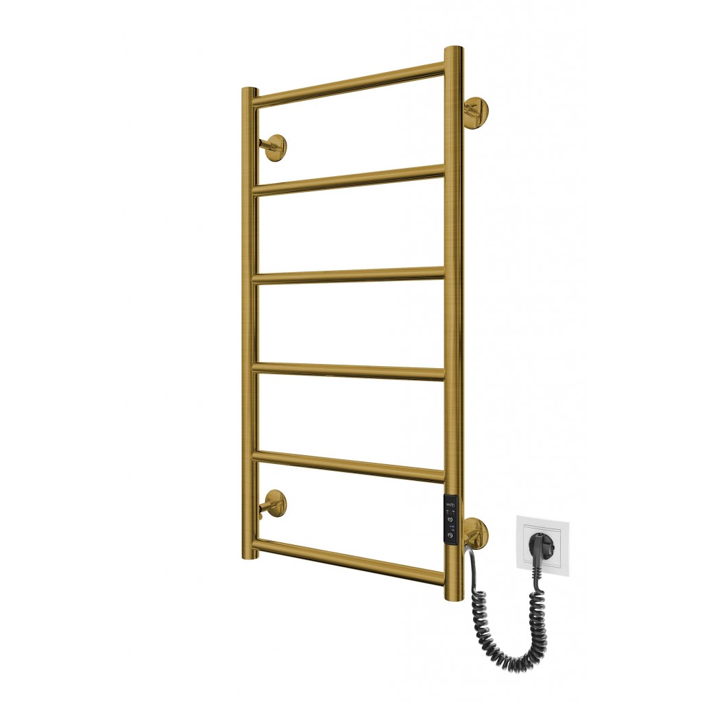 Електросушарка для рушників побутова Класік F НР-I 800х430/75 TR K золото сатин. Обладнана таймер-регулятором. Сумісна з комплектом прихованого підключення. Виготовлена з полірованої нержавіючої сталі. Варіанти покриття: полірована, сатин, чорний мат. Температурні режими таймер-регулятора: 40°С, 45°С, 50°С. Варіанти часу роботи: 3, 6 годин та постійний нагрів. Потужність 75.0 Вт. Гарантія - 20 років на корпус / 5 років на електричну частину/ 2 роки на покриття.