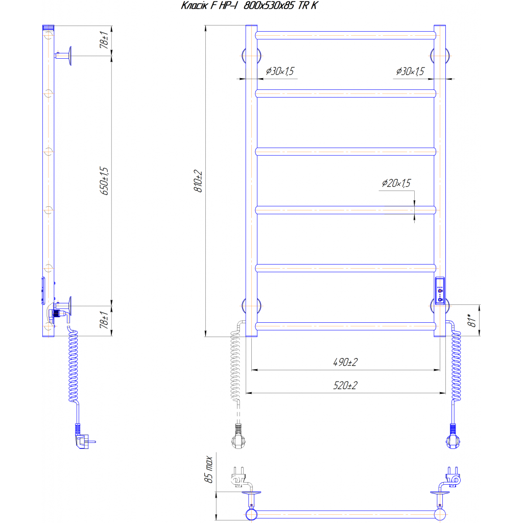 Електросушарка для рушників побутова Класік F НР-I 800х530/75 TR K.