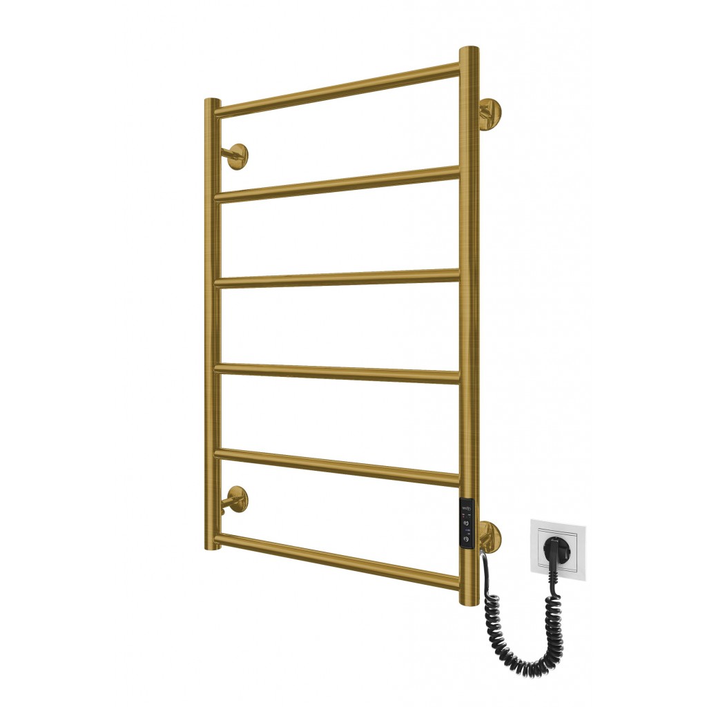 Електросушарка для рушників побутова Класік F НР-I 800х530/75 TR K золото сатин. Обладнана таймер-регулятором. Сумісна з комплектом прихованого підключення. Виготовлена з полірованої нержавіючої сталі. Варіанти покриття: полірована, сатин, чорний мат. Температурні режими таймер-регулятора: 40°С, 45°С, 50°С. Варіанти часу роботи: 3, 6 годин та постійний нагрів. Потужність 100.0 Вт. Гарантія - 20 років на корпус / 5 років на електричну частину/ 2 роки на покриття.