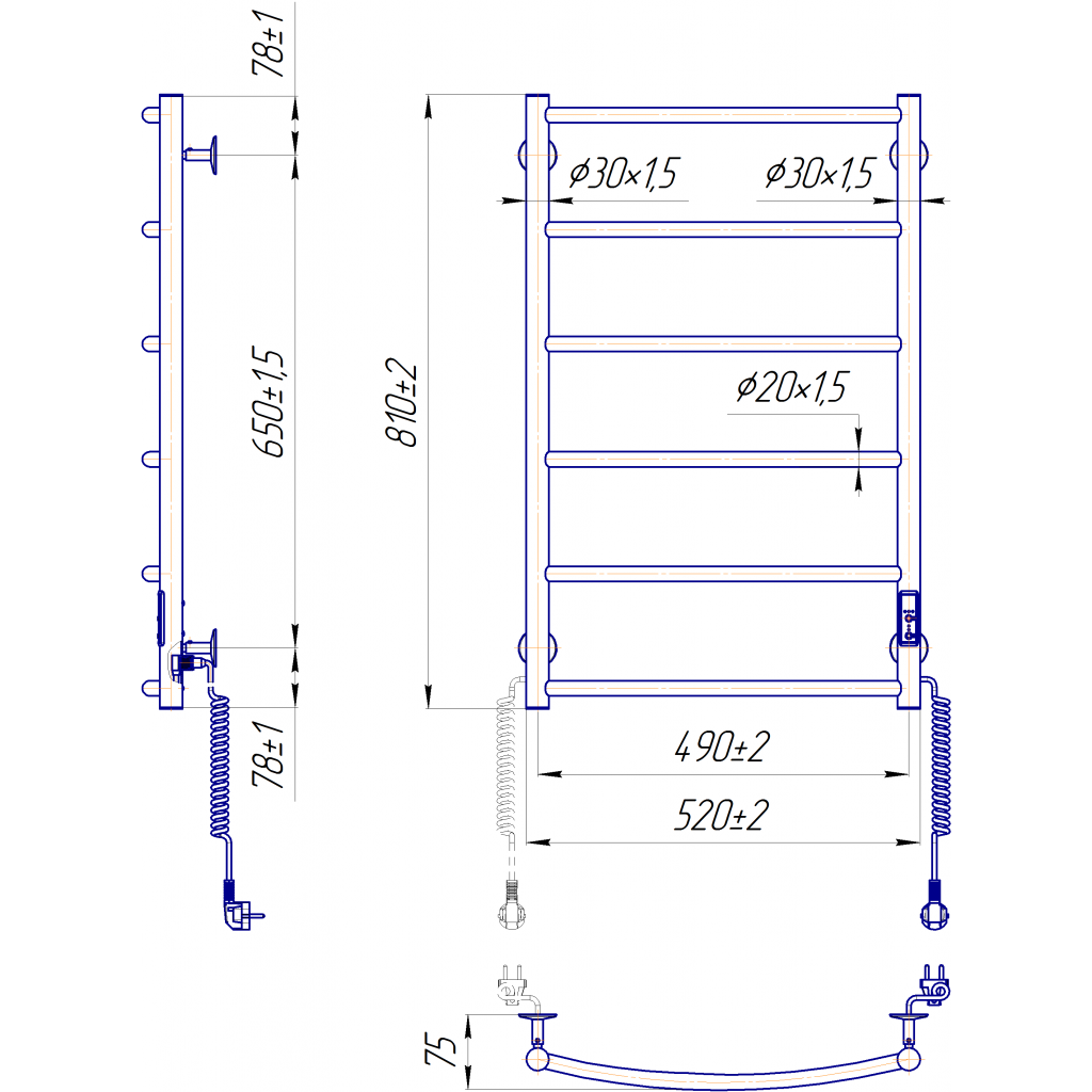 Електросушарка для рушників побутова Класік НР-І 800х530/85 TR К покриття сатин. Обладнана таймер-регулятором. Сумісна з комплектом прихованого підключення. Виготовлена з полірованої нержавіючої сталі. Варіанти покриття: полірована, сатин, чорний мат. Температурні режими таймер-регулятора: 40°С, 45°С, 50°С. Варіанти часу роботи: 3, 6 годин та постійний нагрів. Потужність 100.0 Вт. Гарантія - 20 років на корпус / 5 років на електричну частину/ 2 роки на покриття.