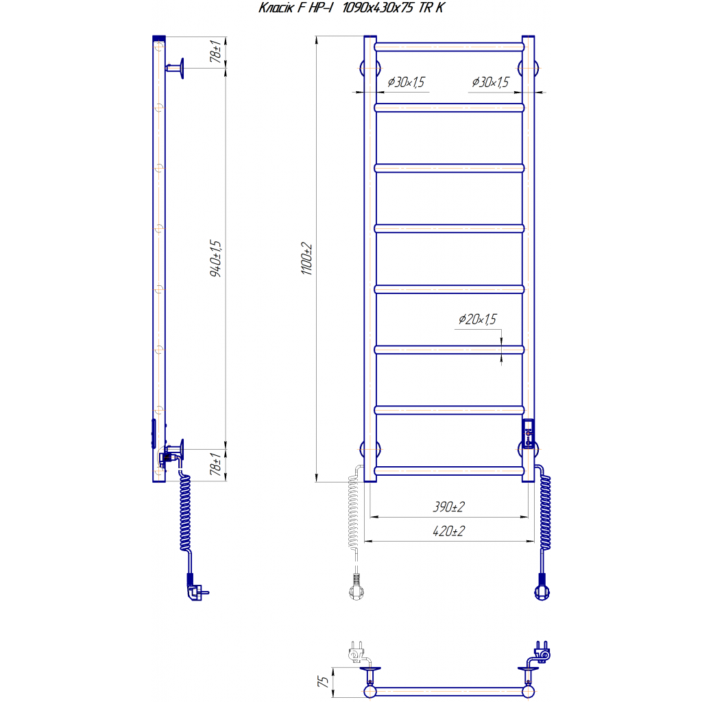 Електросушарка для рушників побутова Класік F НР-I 1090х430/75 TR K.