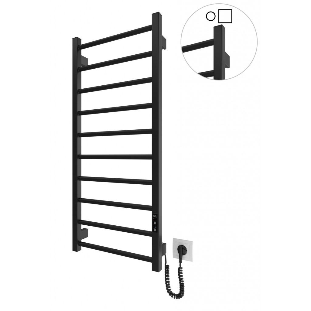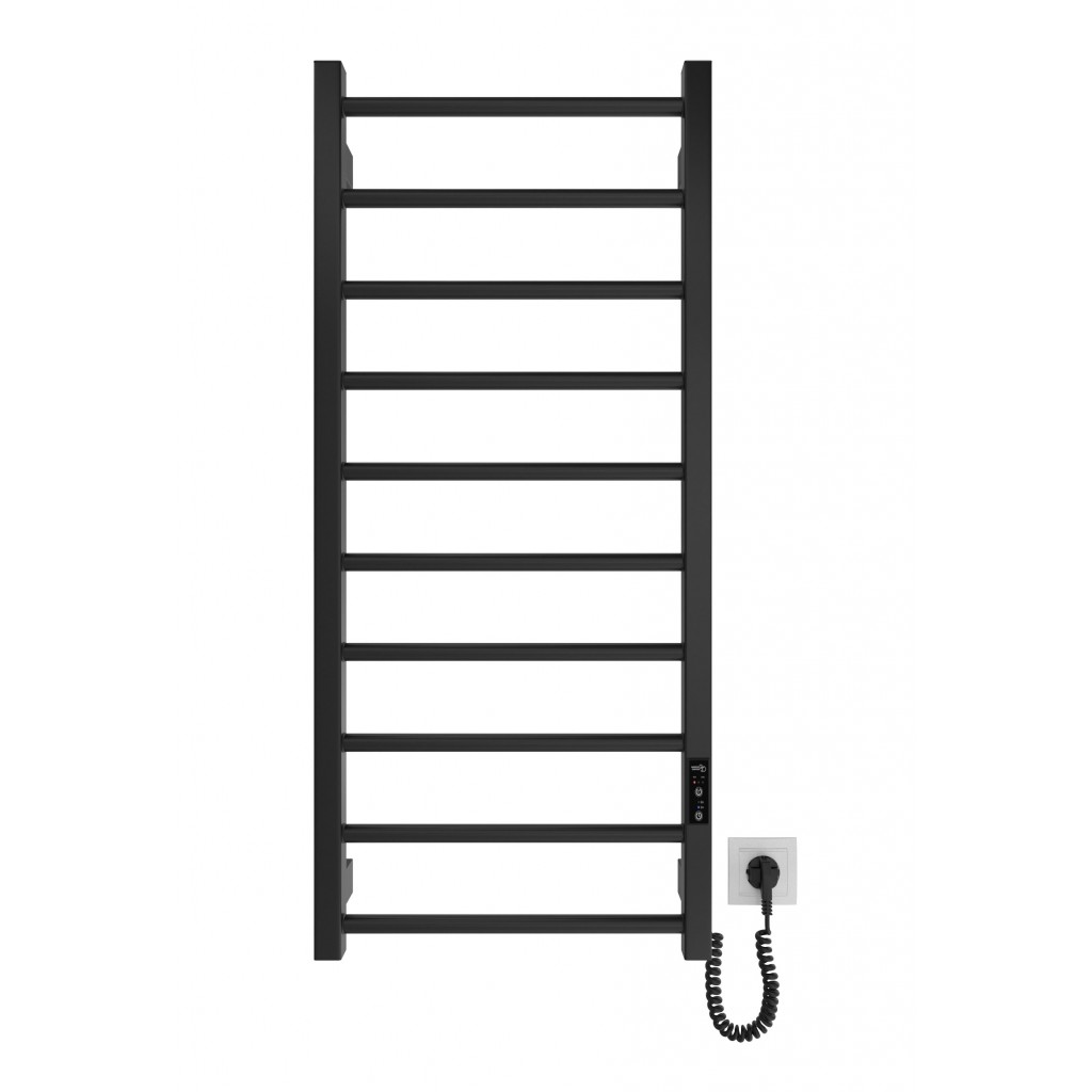 Електрична рушникосушарка HF Leeds 970x430. Працює за технологією сухого ТЕНу. Обладнана вбудованим таймер-регулятором і конектором для підключення до живлення з будь-якого боку. Оснащена комплектом для прихованого підключення. Модель має 10 ребер з круглої труби та стійки з квадратного профілю. Матеріал - чорна сталь з антикорозійною обробкою. Варіанти покриття: чорний мат або білий мат. Температурні режими таймер-регулятора: 40°С, 45°С, 50°С. Час роботи: 3, 6 годин або постійний нагрів. Потужність 120 Вт. Гарантія - 3 роки