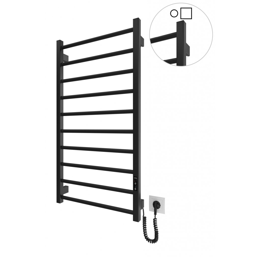 Електрична рушникосушарка HF Leeds 970x530. Працює за технологією сухого ТЕНу. Обладнана вбудованим таймер-регулятором і конектором для підключення до живлення з будь-якого боку. Оснащена комплектом для прихованого підключення. Модель має 10 ребер з круглої труби та стійки з квадратного профілю. Матеріал - чорна сталь з антикорозійною обробкою. Варіанти покриття: чорний мат або білий мат. Температурні режими таймер-регулятора: 40°С, 45°С, 50°С. Час роботи: 3, 6 годин або постійний нагрів. Потужність 130 Вт. Гарантія - 3 роки