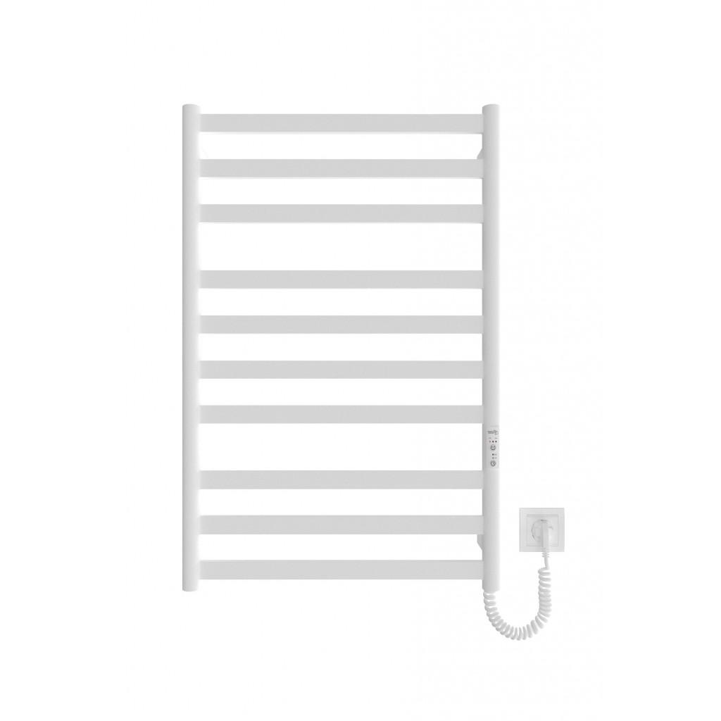 Електрична рушникосушарка HF York 770х530. Працює за технологією сухого ТЕНу. Обладнана вбудованим таймер-регулятором і конектором для підключення до живлення з будь-якого боку. Оснащена комплектом для прихованого підключення. Модель має 10 ребр з прямокутногої труби та стійки з круглої труби. Матеріал - чорна сталь з антикорозійною обробкою. Варіанти покриття: чорний мат або білий мат. Температурні режими таймер-регулятора: 40°С, 45°С, 50°С. Час роботи: 3, 6 годин або постійний нагрів. Потужність 130 Вт. Гарантія - 3 роки.