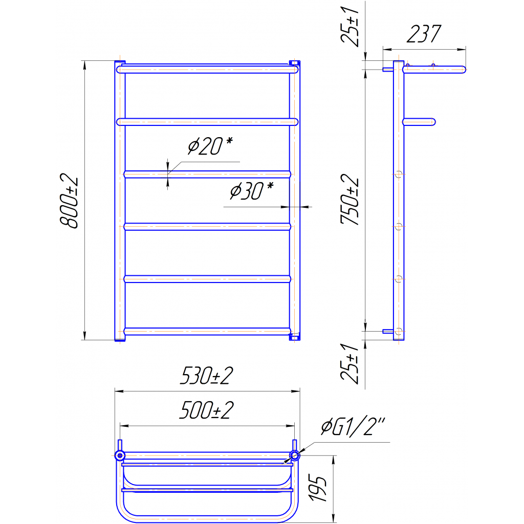 Рушникосушарка "Маріо" Hotel 800х530/500.