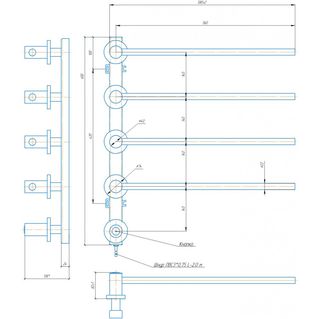 Виготовлена з полірованої нержавіючої сталі без хромування. Варіант покриття: полірований. Потужність 40 Вт. Додатково для зручності користування можна оснастити гачками. Гарантія - 20 років на корпус / 5 років на електричну частину.