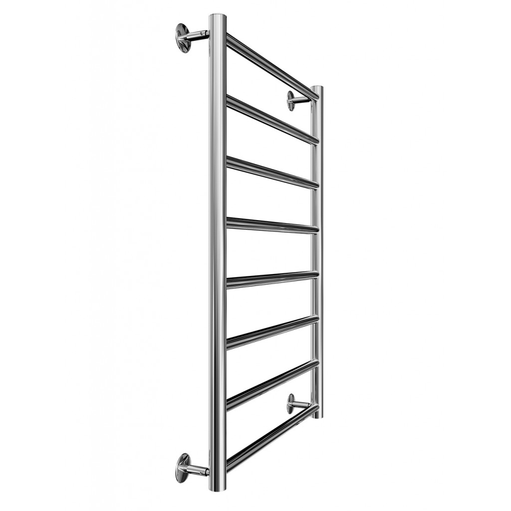 Рушникосушарка INOX Флет 770х530/500. Розміри: висота - 770 мм, ширина - 530 мм, глибина 80 мм, міжцентрова відстань для підключення - 500 мм, діаметр підключення G1/2''. Варіанти підключення: нижнє, діагональне та бічне. Кількість ребер - 8. Виготовлена з полірованої нержавіючої сталі без хромування. Для всесезонної роботи водяну модель можна переобладнати на комбіновану, встановивши ТЕН, рекомендована потужність 200 Вт. Сумісні аксесуари: поворотні полиці та навісні гачки для збільшення функціональності. Рекомендовано підключати рушникосушарку за допомогою кранів Маріо. Гарантія - 50 років в закритій системі опалення, 5 років у централізованій.