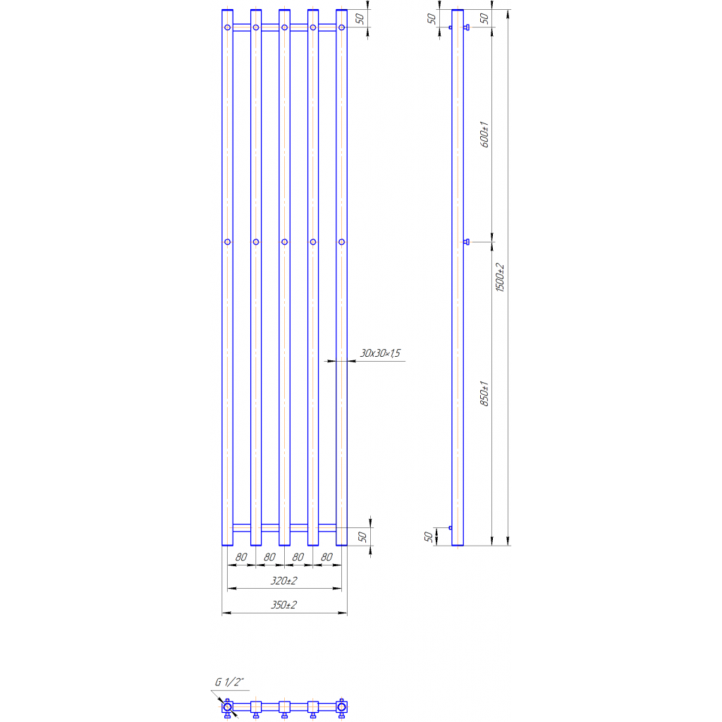Рушникосушарка INOX Туб Куб 1500х350/320. Розміри: висота - 0 мм, ширина - 0 мм, глибина 0 мм, міжцентрова відстань для підключення - 0 мм, діаметр підключення G1/2''. Варіанти підключення: нижнє, діагональне та бічне. Кількість ребер - 0. Виготовлена з полірованої нержавіючої сталі без хромування. Для всесезонної роботи водяну модель можна переобладнати на комбіновану, встановивши ТЕН, рекомендована потужність . Сумісні аксесуари: поворотні полиці та навісні гачки для збільшення функціональності. Рекомендовано підключати рушникосушарку за допомогою кранів Маріо. Гарантія - 50 років в закритій системі опалення, 5 років у централізованій.