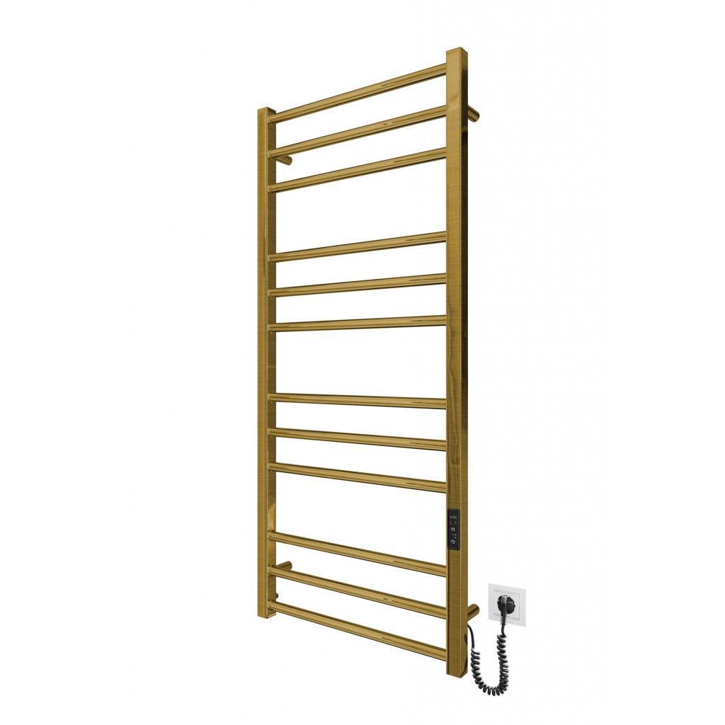 Електросушарка для рушників побутова Преміум Класік-I 1100х500/80 TR К золото сатин. Обладнана таймер-регулятором. Сумісна з комплектом прихованого підключення. Виготовлена з полірованої нержавіючої сталі. Варіанти покриття: полірована, сатин, чорний мат. Температурні режими таймер-регулятора: 40°С, 45°С, 50°С. Варіанти часу роботи: 3, 6 годин та постійний нагрів. Потужність 125.0 Вт. Гарантія - 20 років на корпус / 5 років на електричну частину/ 2 роки на покриття.