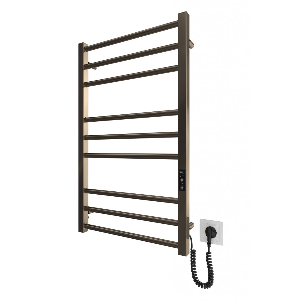 Електросушарка для рушників побутова Преміум Класік-I 800х500/80 TR К бронза. Обладнана таймер-регулятором. Сумісна з комплектом прихованого підключення. Виготовлена з полірованої нержавіючої сталі. Варіанти покриття: полірована, сатин, чорний мат. Температурні режими таймер-регулятора: 40°С, 45°С, 50°С. Варіанти часу роботи: 3, 6 годин та постійний нагрів. Потужність 100.0 Вт. Гарантія - 20 років на корпус / 5 років на електричну частину/ 2 роки на покриття.
