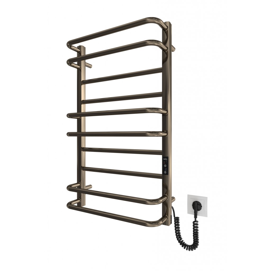 Електросушарка для рушників побутова Преміум Люкс-I 800х500/170 TR К бронза. Обладнана таймер-регулятором. Сумісна з комплектом прихованого підключення. Виготовлена з полірованої нержавіючої сталі. Варіанти покриття: полірована, сатин, чорний мат. Температурні режими таймер-регулятора: 40°С, 45°С, 50°С. Варіанти часу роботи: 3, 6 годин та постійний нагрів. Потужність 160.0 Вт. Гарантія - 20 років на корпус / 5 років на електричну частину/ 2 роки на покриття.