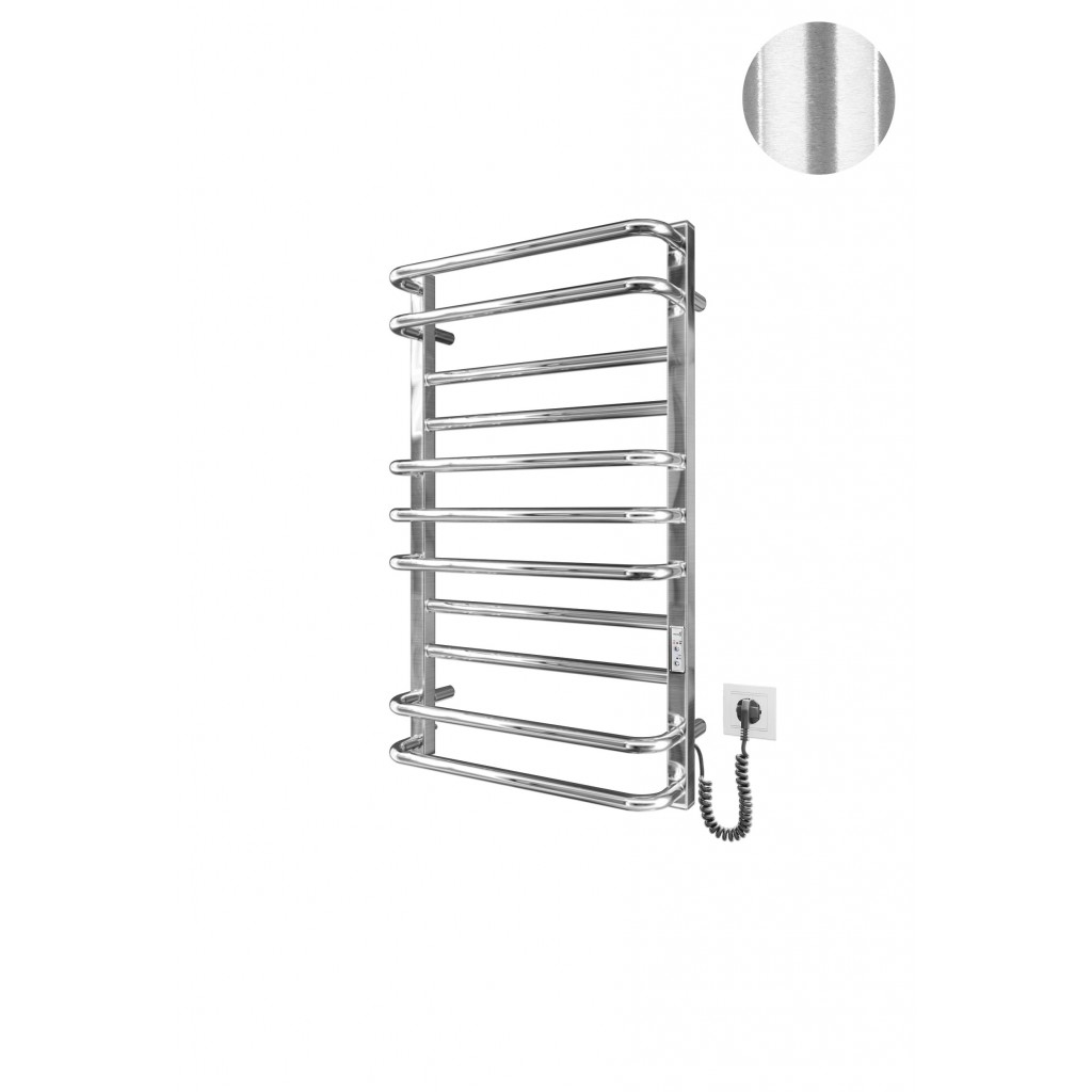 Електросушарка для рушників побутова Преміум Люкс-I 800х500/170 TR К покриття сатин. Обладнана таймер-регулятором. Сумісна з комплектом прихованого підключення. Виготовлена з полірованої нержавіючої сталі. Варіанти покриття: полірована, сатин, чорний мат. Температурні режими таймер-регулятора: 40°С, 45°С, 50°С. Варіанти часу роботи: 3, 6 годин та постійний нагрів. Потужність 160.0 Вт. Гарантія - 20 років на корпус / 5 років на електричну частину/ 2 роки на покриття.