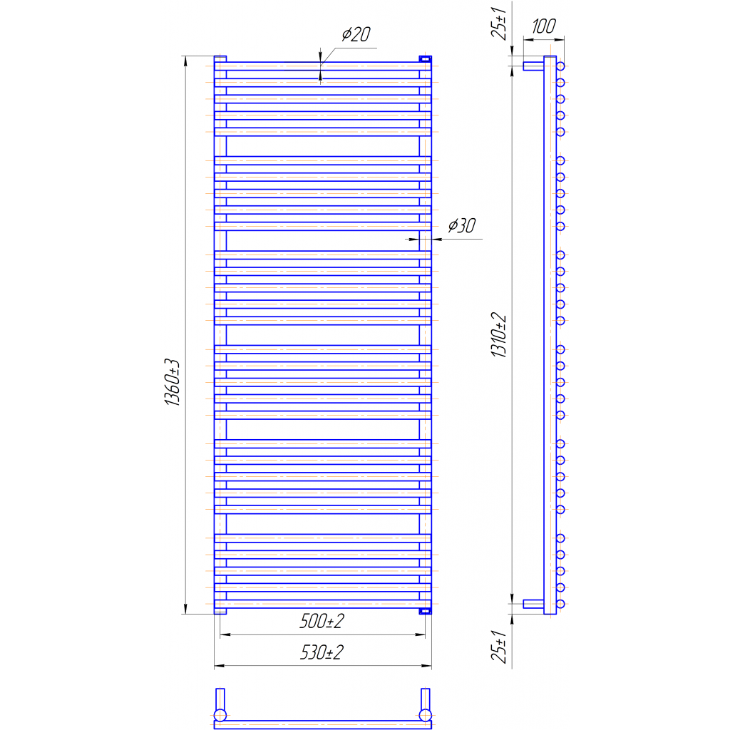 рушникосушка - 1шт. комплект кріплень - 1шт. кран Маєвського - 1 шт. заглушка - 1шт. паспорт - 1шт. коробка - 1шт.Розміри | 1360x530 |