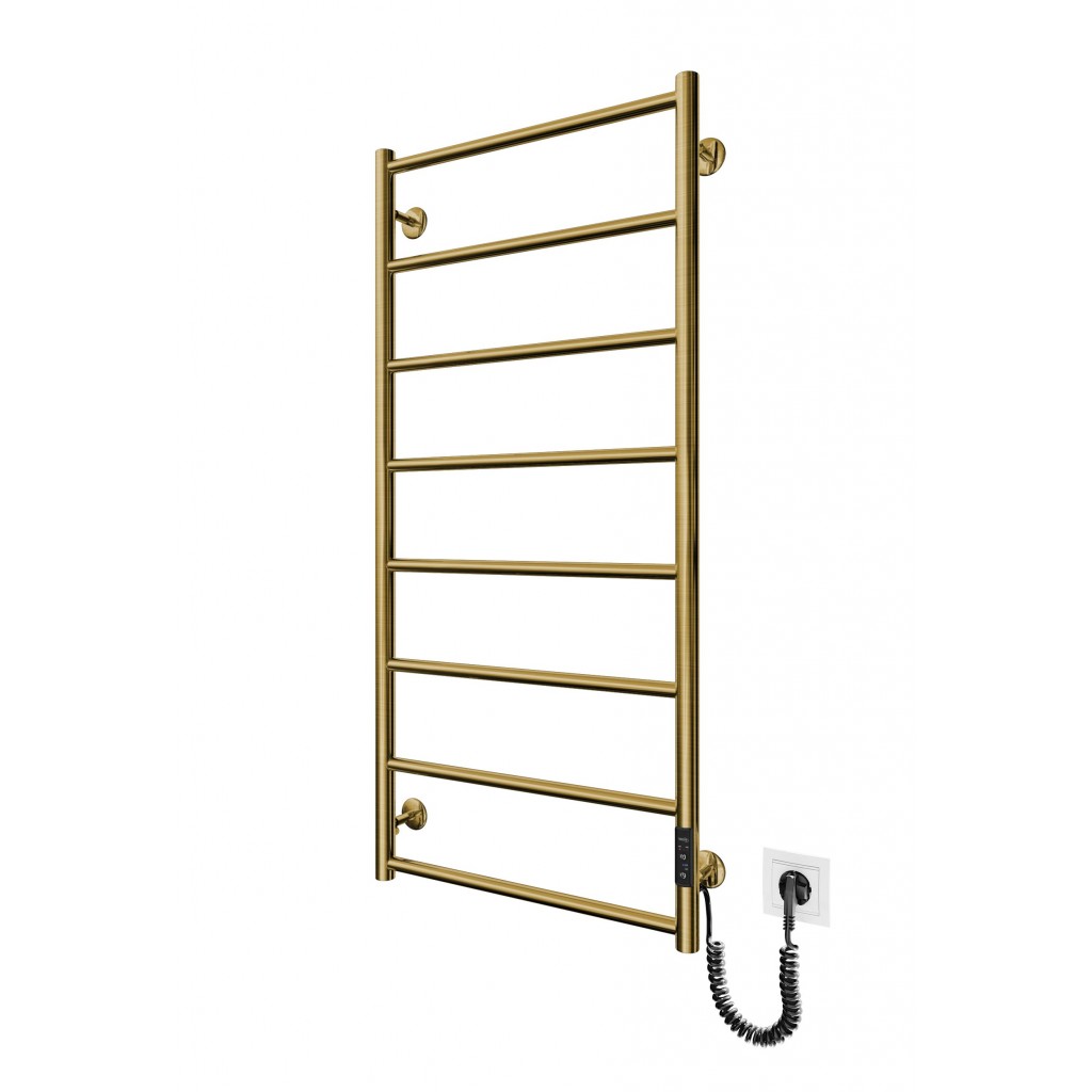 Бытовая электрическая полотенцесушилка Рушникосушка Класік F НР-I 1090х530/75 TR K золото сатин. Оснащена таймер-регулятором и коннектором для подключения к розетке с любой стороны. Совместима с комплектом скрытого подключения. Имеет 8 перекладин и стойки. Изготовлена из полированной нержавеющей стали без хромирования. Температурные режимы таймер-регулятора: 40°С, 45°С, 50°С. Варианты времени работы: 3, 6 часов и постоянный нагрев. Мощность [3 Вт]. Для удобства использования можно дополнительно оснастить навесными крючками. Гарантия — .
