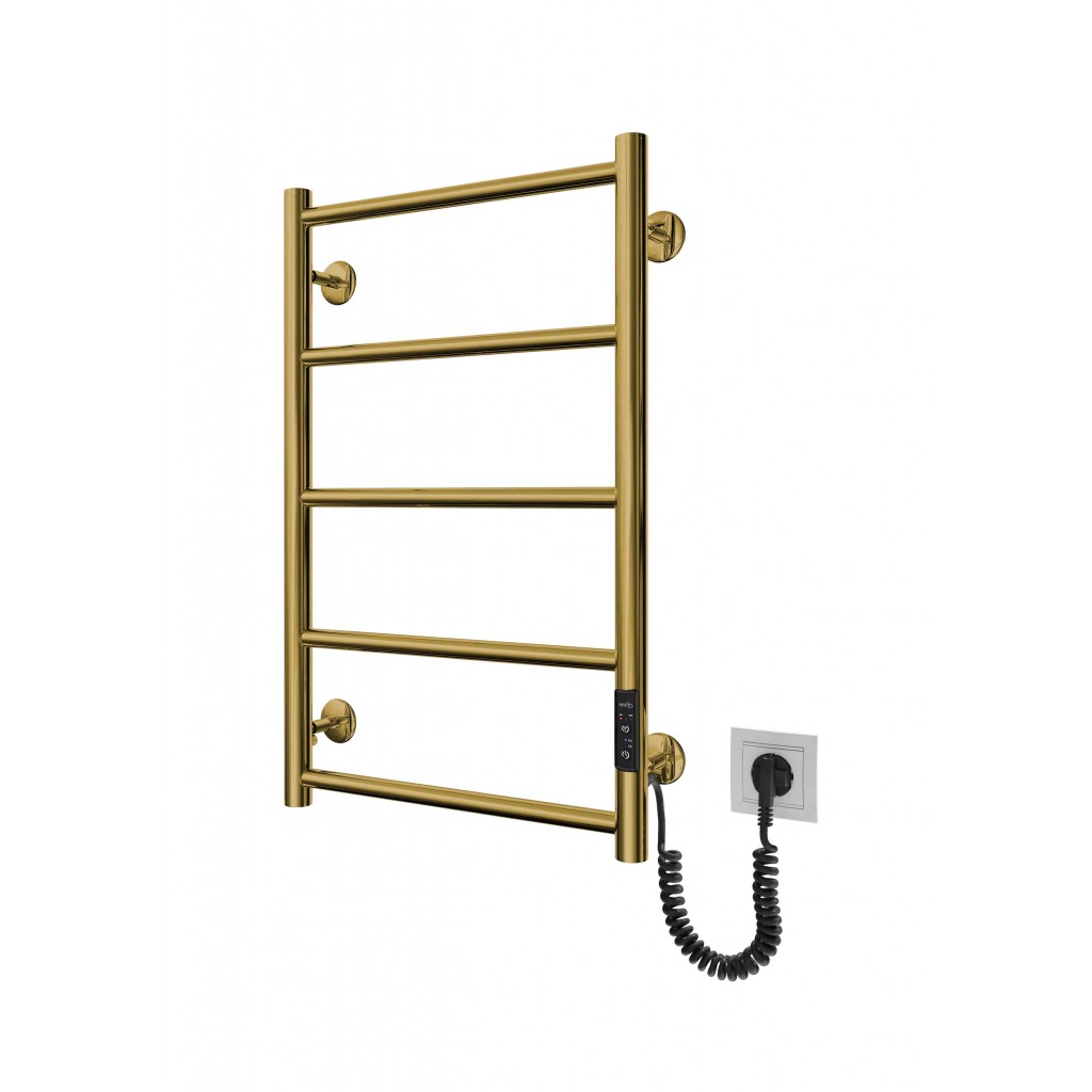 Бытовая электрическая полотенцесушилка Рушникосушка Класік F НР-I 650х430/75 TR K золото. Оснащена таймер-регулятором и коннектором для подключения к розетке с любой стороны. Совместима с комплектом скрытого подключения. Имеет 5 перекладин и стойки. Изготовлена из полированной нержавеющей стали без хромирования. Температурные режимы таймер-регулятора: 40°С, 45°С, 50°С. Варианты времени работы: 3, 6 часов и постоянный нагрев. Мощность [3 Вт]. Для удобства использования можно дополнительно оснастить навесными крючками. Гарантия — .